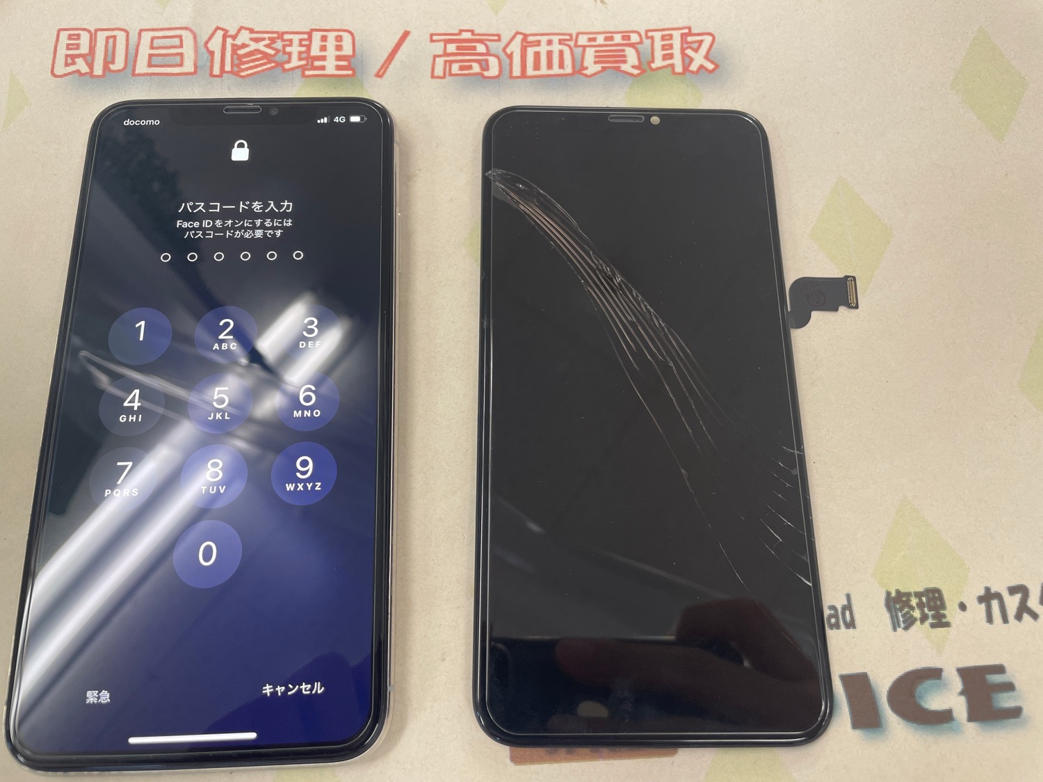 iPhone XS MAX ガラス割れ/表示不良→有機ELパーツ使用 ¥25,800(税込)
