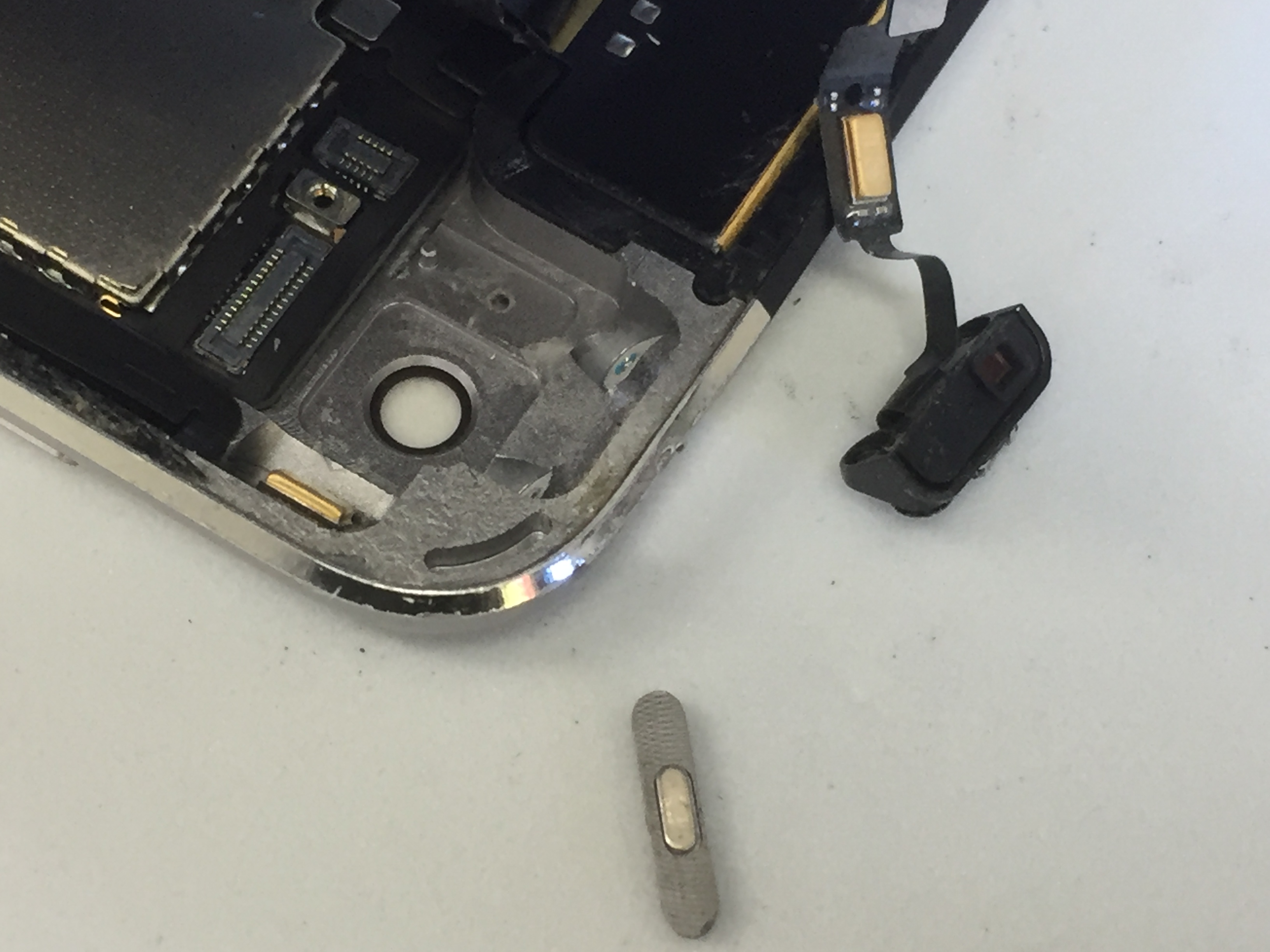電源ボタン部分から落下してしまったようでボタンが変形し押せない状態でした。
