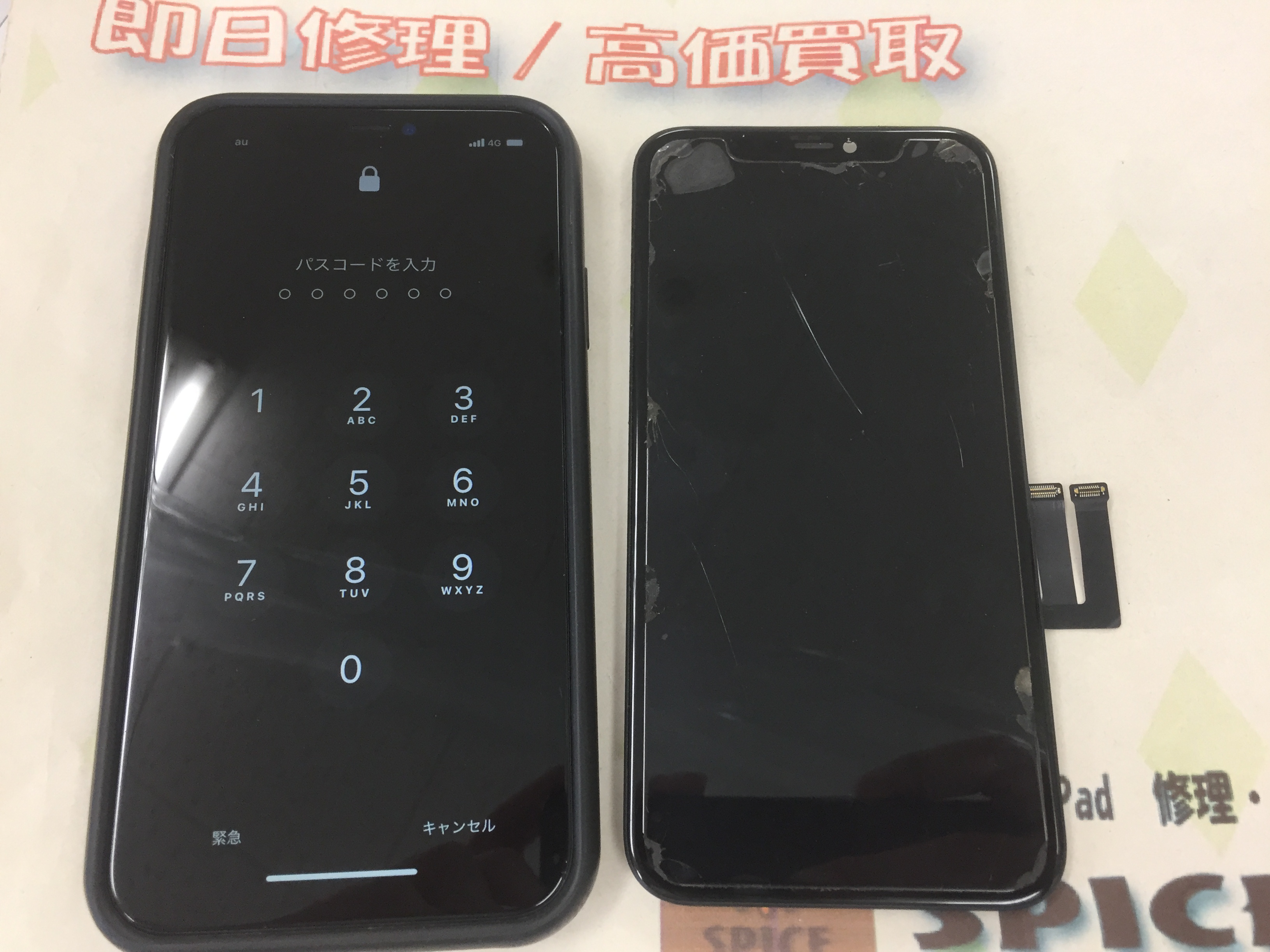 画面割れの影響で液晶不良となっておりましたが30分で元通り修理完了です。