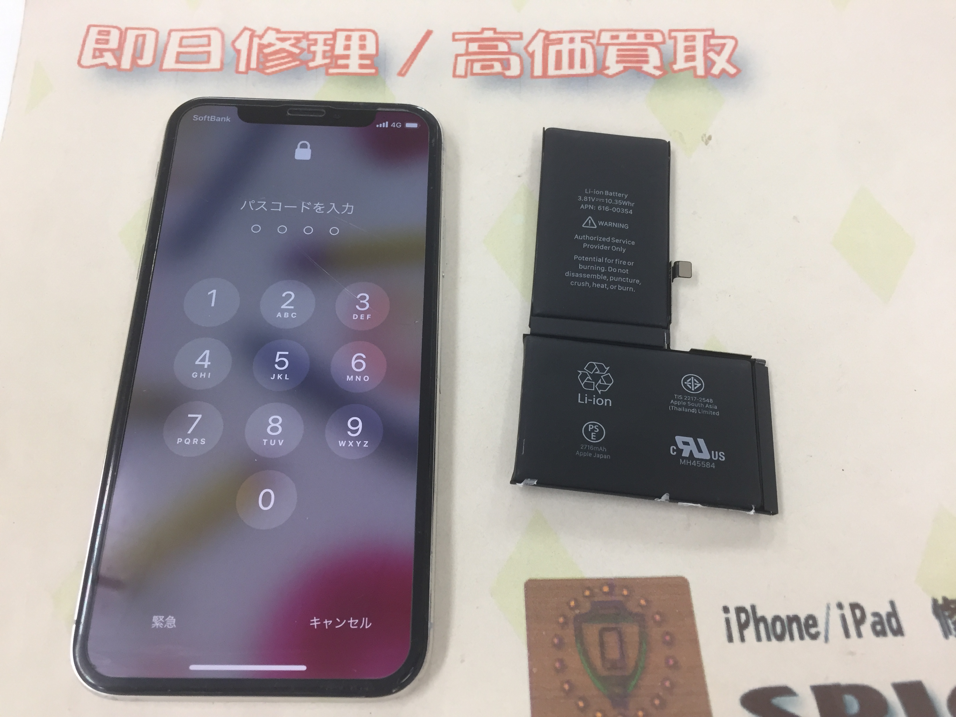 iPhone X バッテリー交換 ¥7,800(税込)