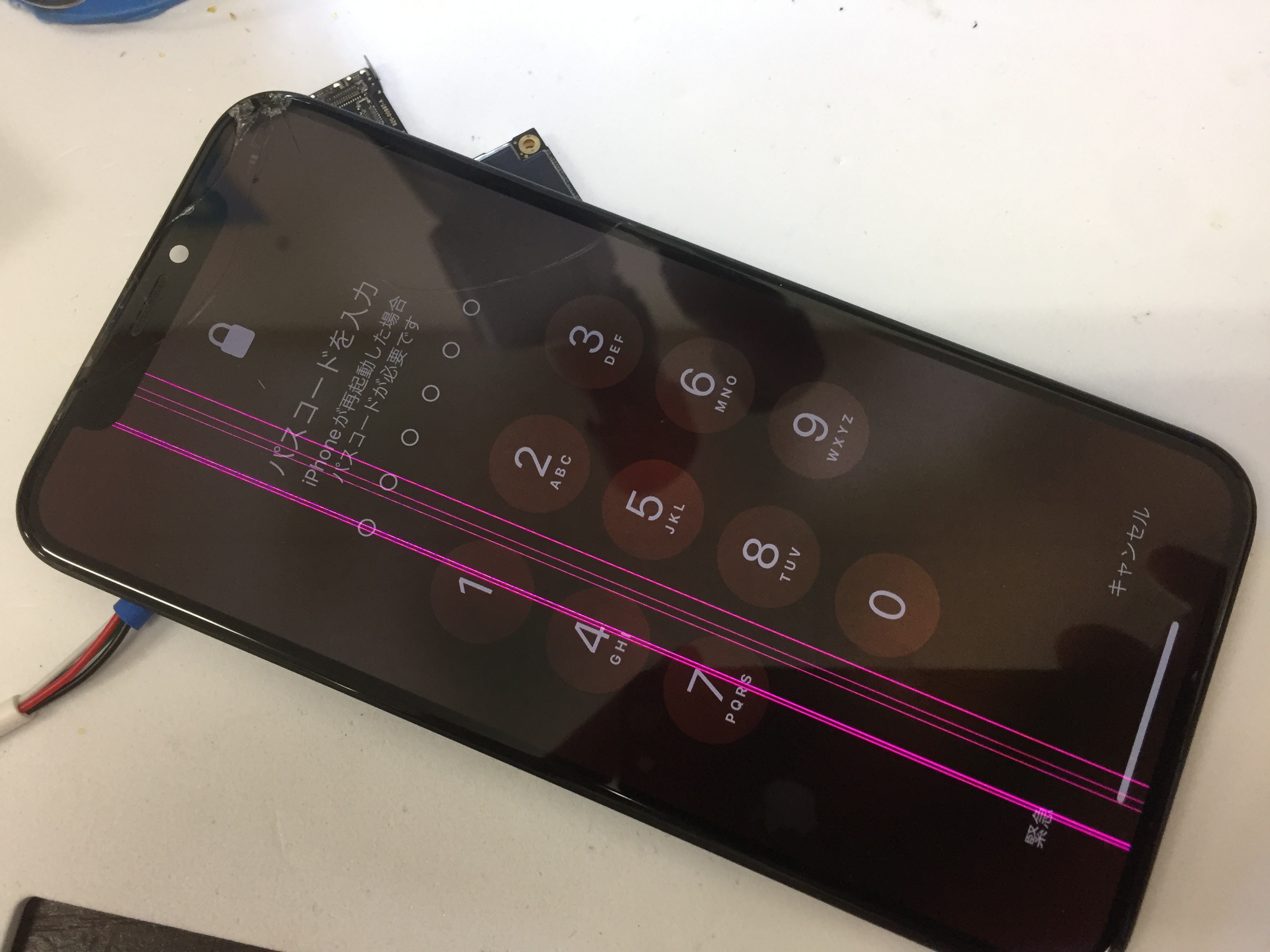 また画面も当店のテスト機に取り付け確認すると損傷しており縦線が表示される状態でした。