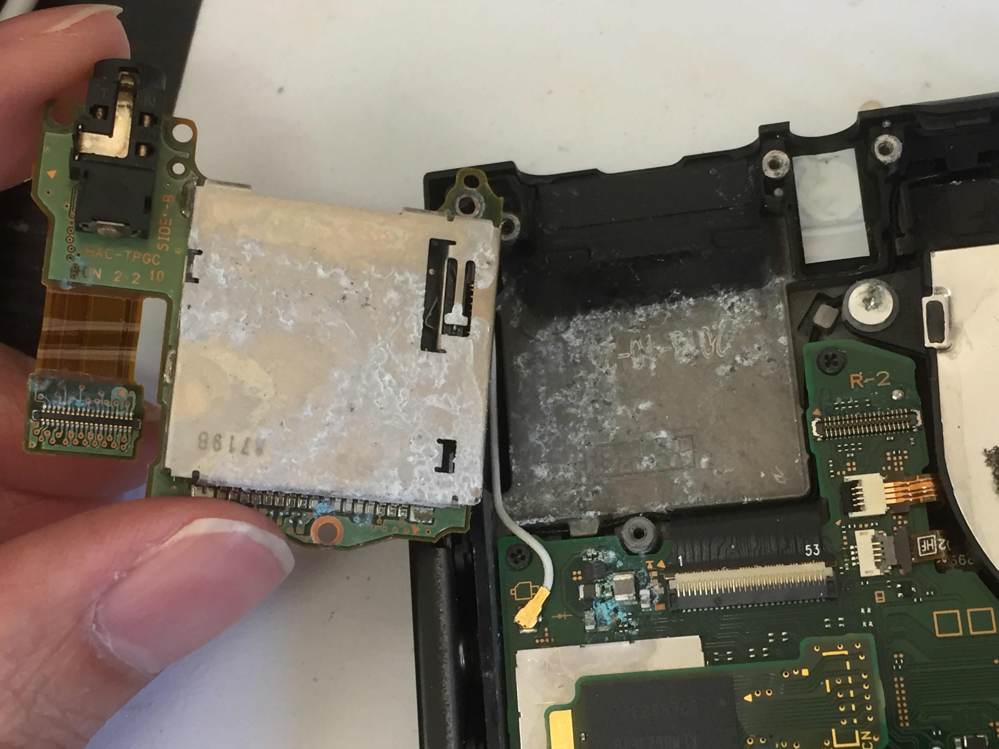 バッテリーや液晶パネルなどの各パーツは問題なくメイン基板がショートしているのが確認出来ました。