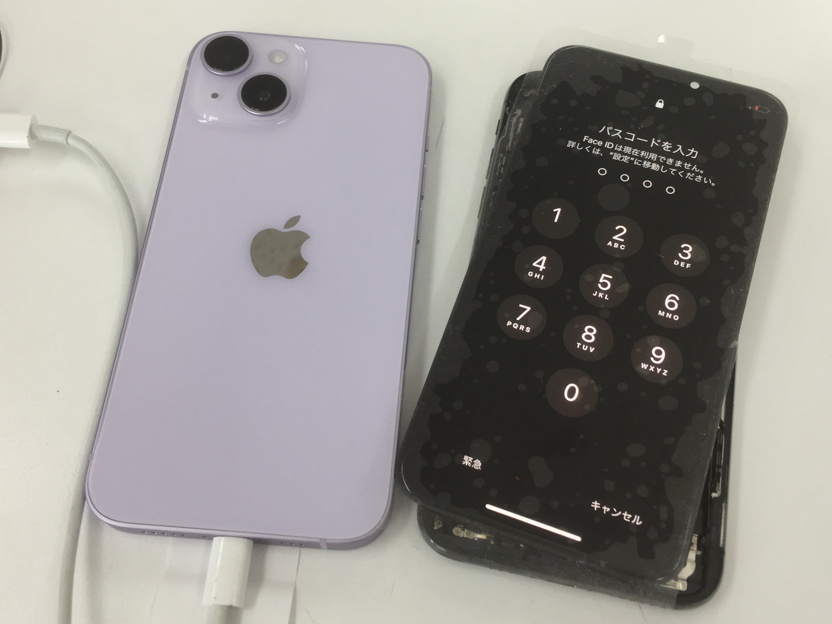 すぐにデータのバックアップを作成し新しく購入されたiPhone14へデータを復元し作業完了です。