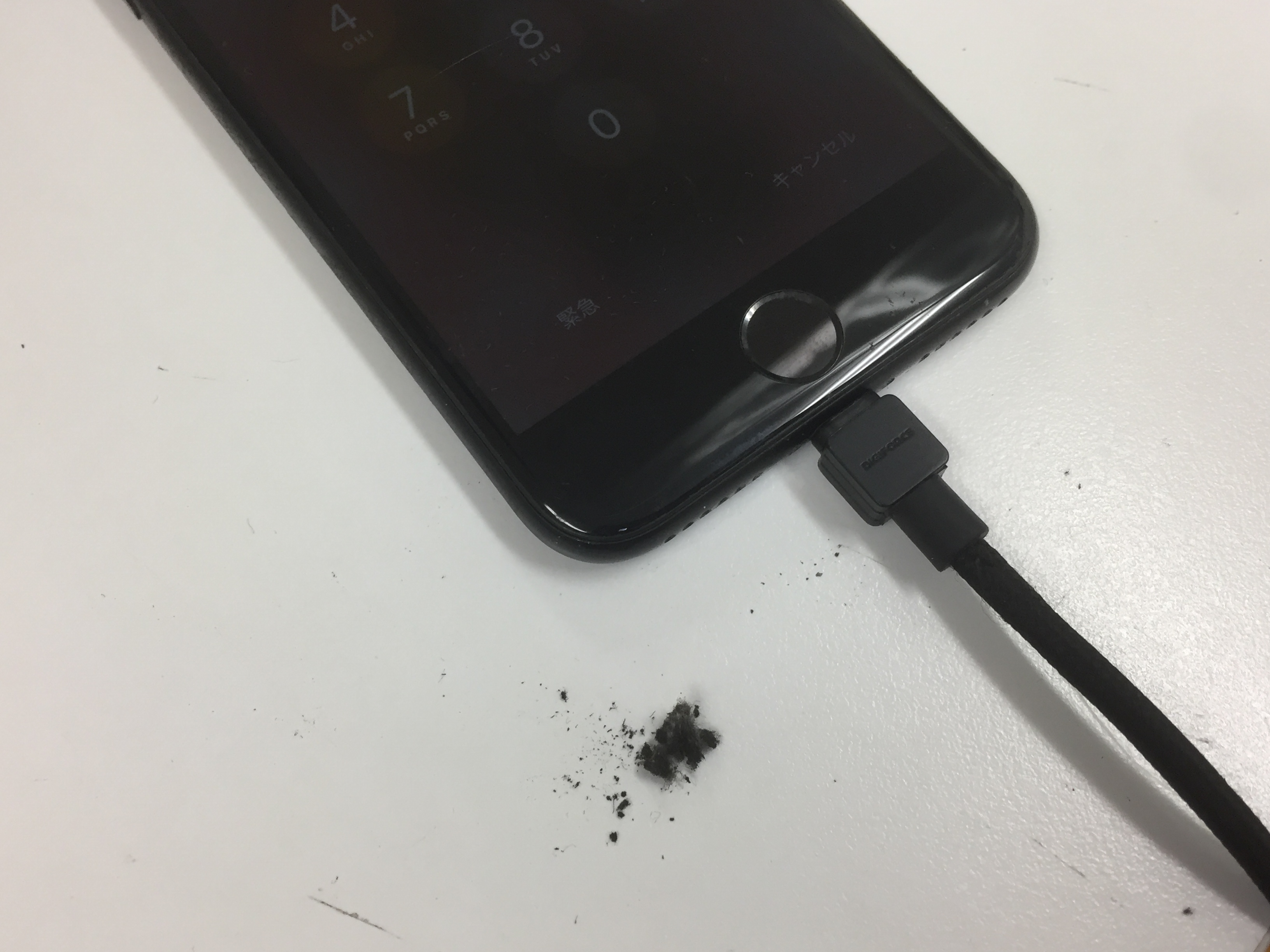 受付時に端末を確認させて頂くと充電ケーブルが奥までしっかり挿し込めませんでした。