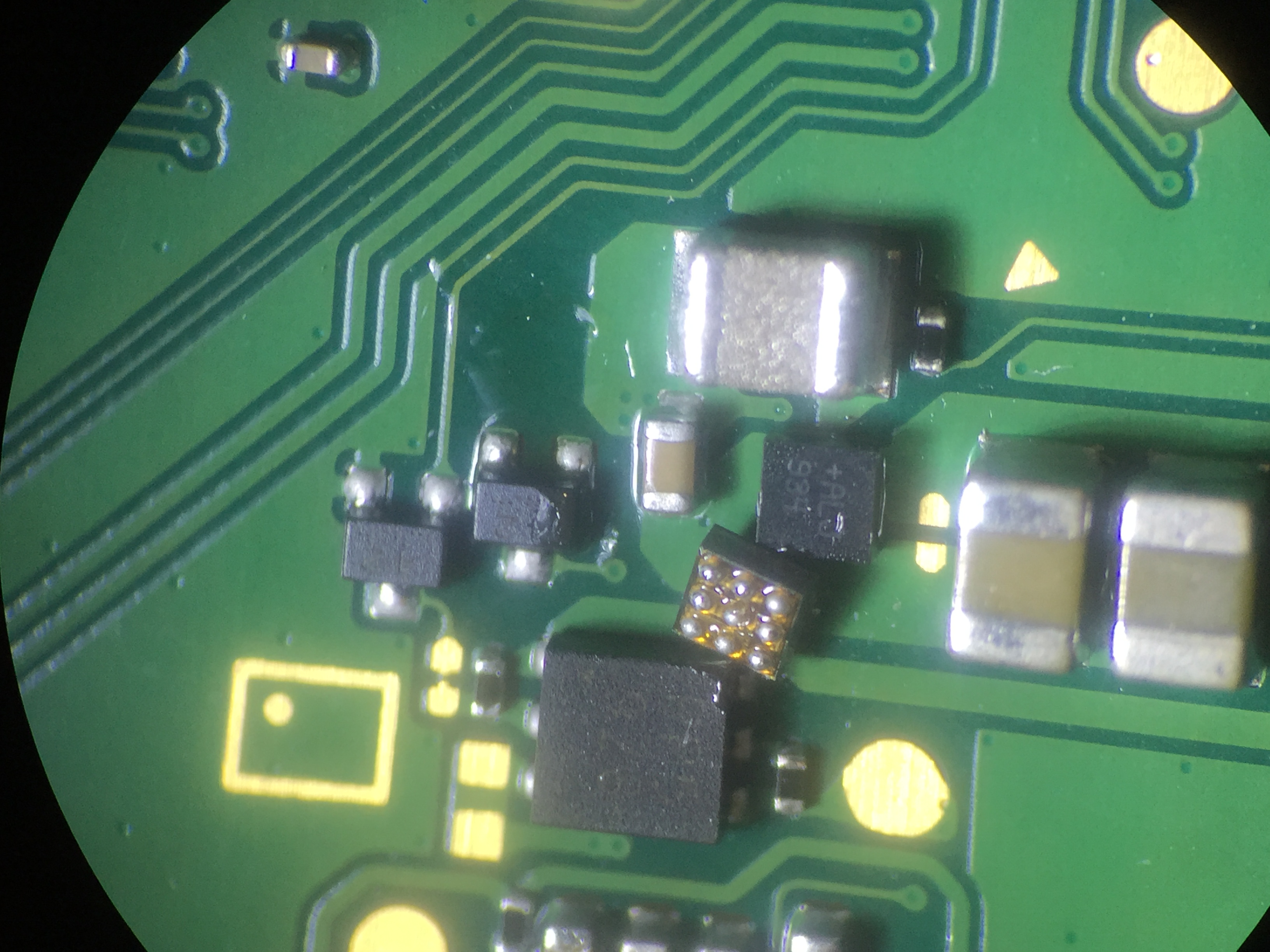 今回の端末はテストバッテリーを取り付けても起動せずメイン基板を点検するとショートしている回路がございました。