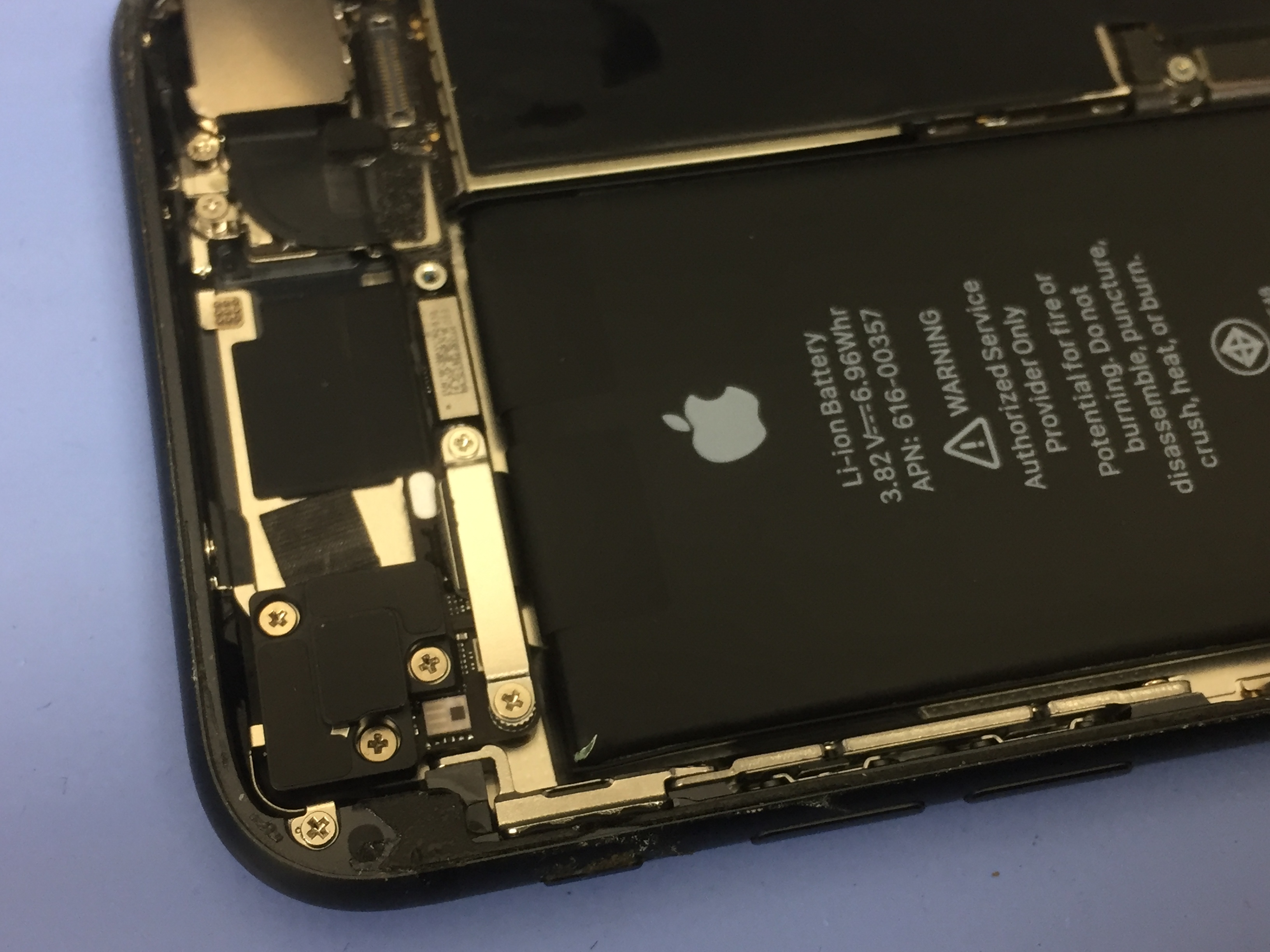 iPhone8は何故かこのようにバッテリーが一部裂けていたりする事がありこうなるとバッテリー残量がコロコロ変わったり途中で電源が落ちてしまったりなどの不具合が発生します。