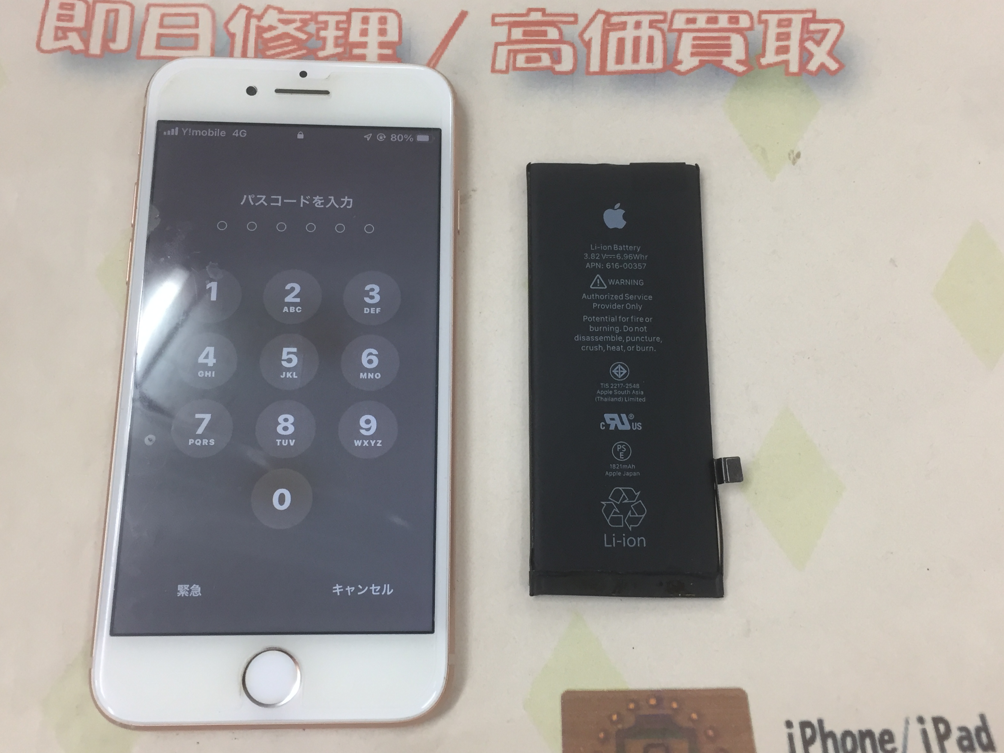 iPhone8 バッテリー交換 ¥6,800(税込)