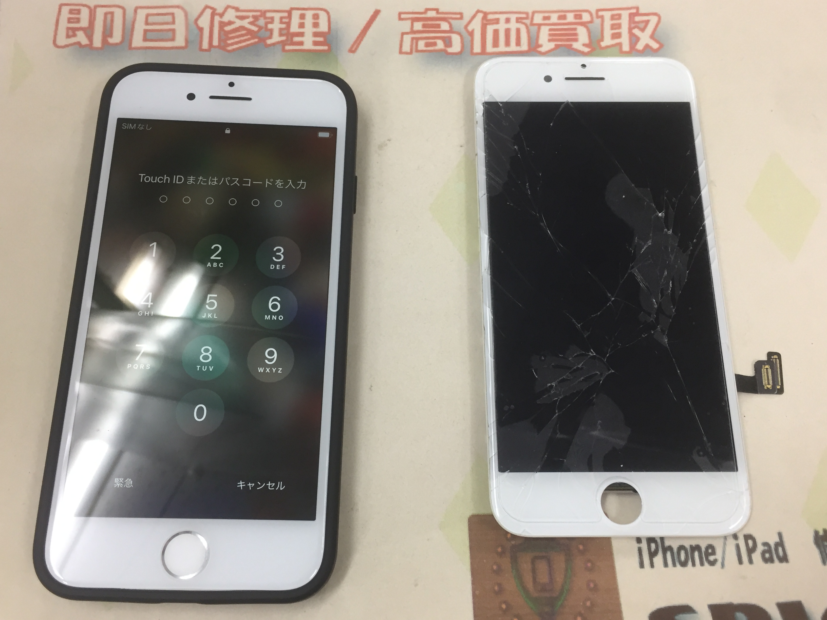 画面割れですが20分程で修理完了です。