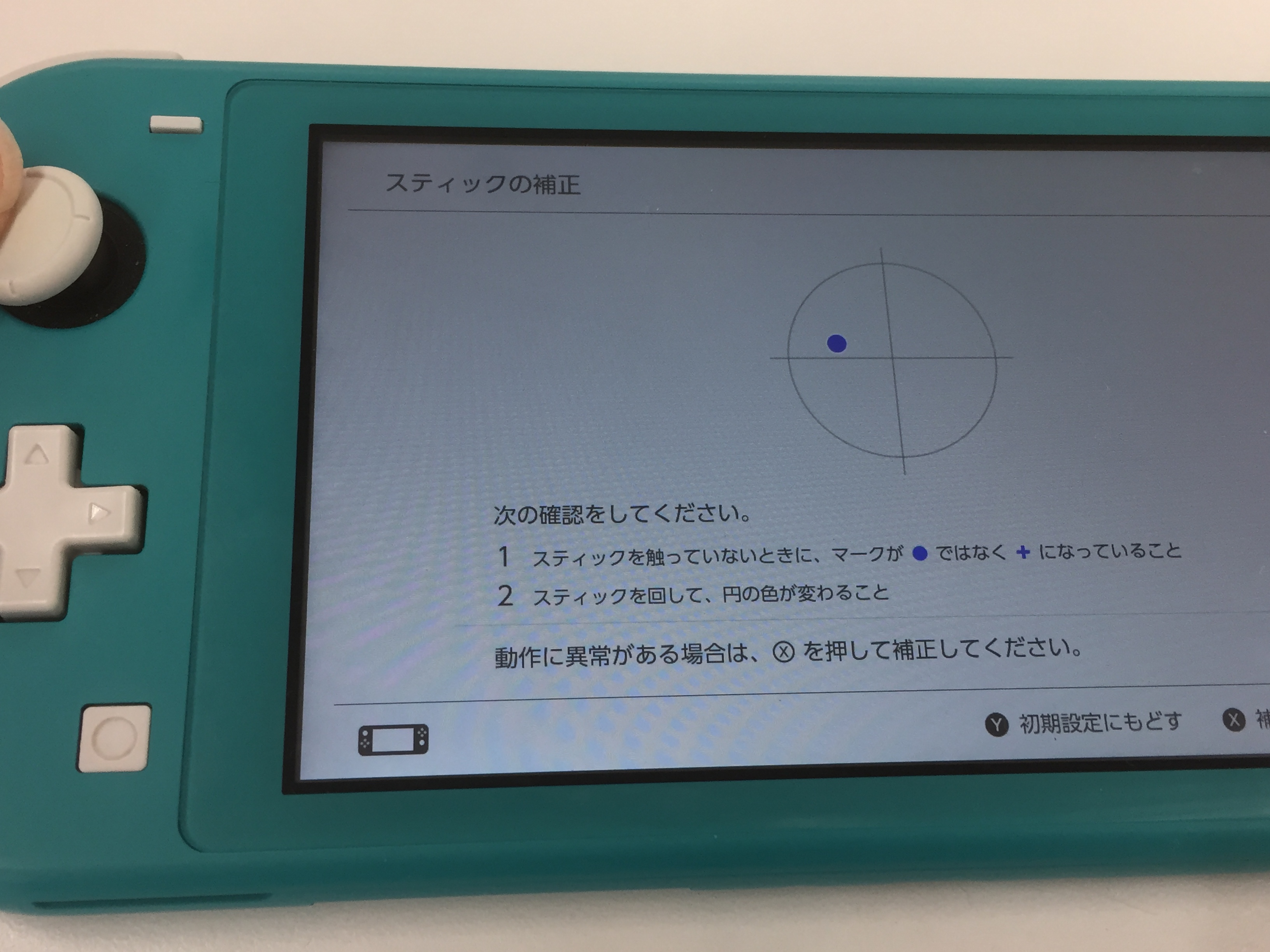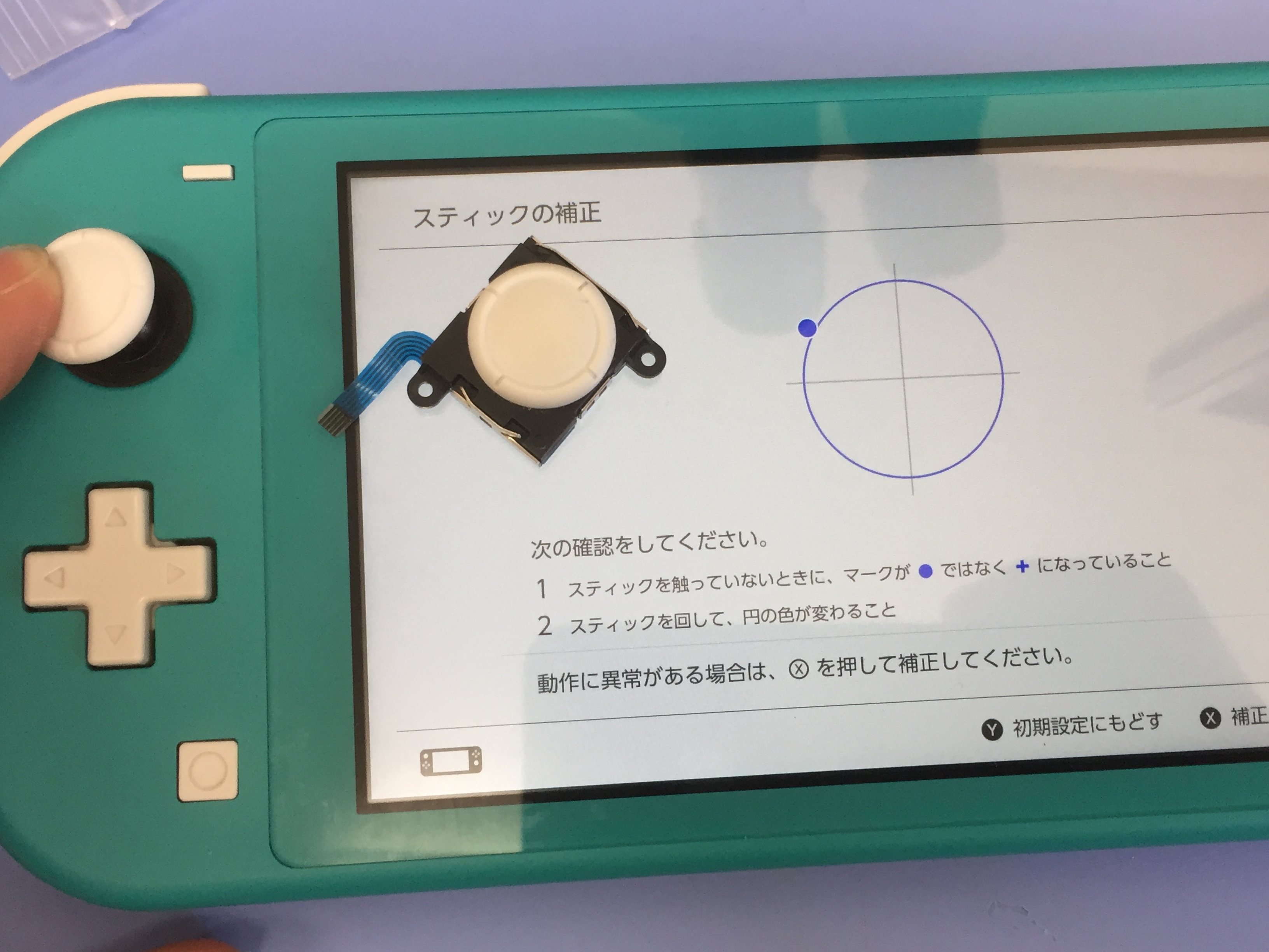 設定のスティック補正画面でもスティックを傾けても端までいかず勝手に動き回る状態でした。