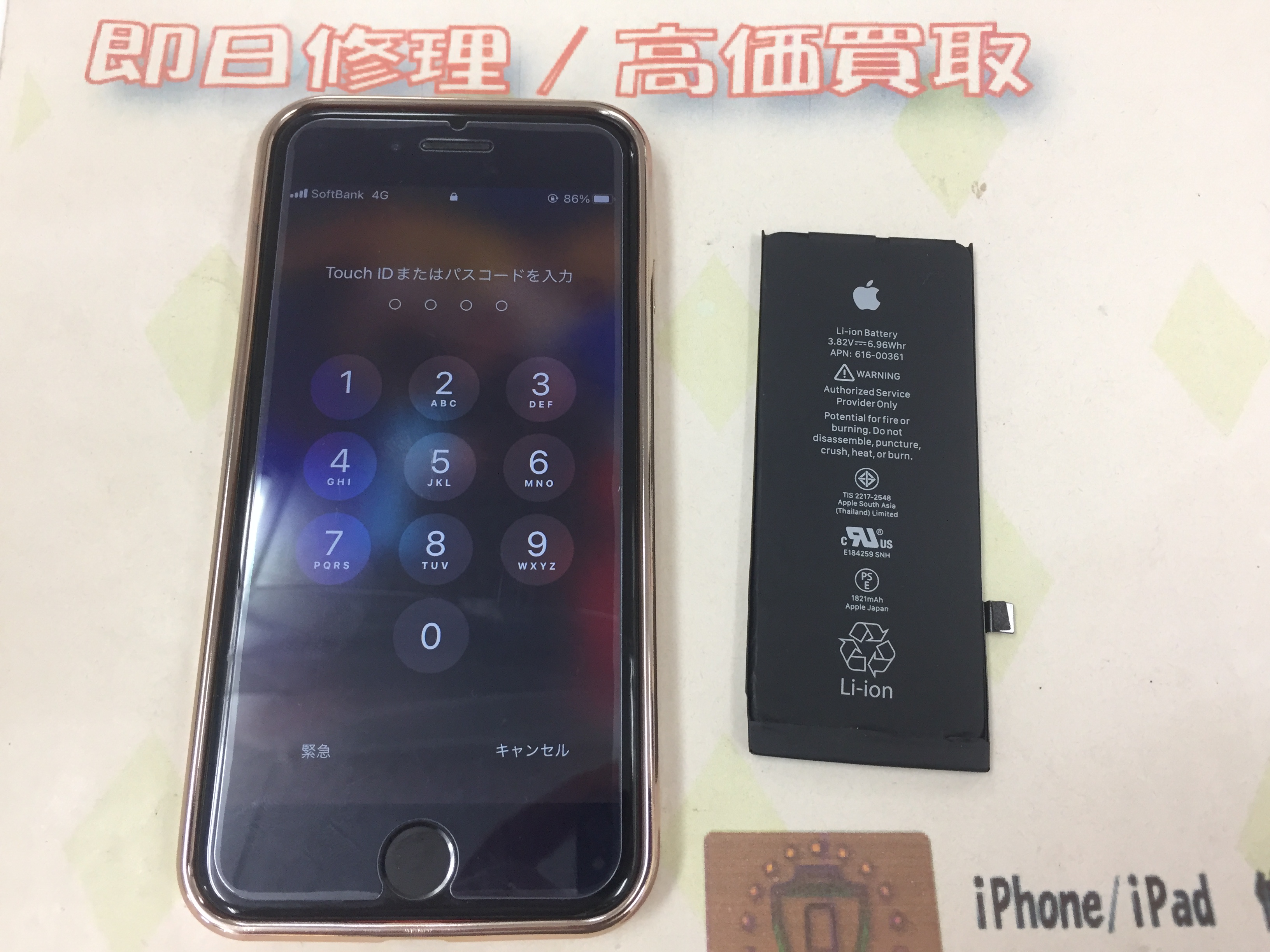 iPhone8 バッテリー交換 ¥6,800(税込)