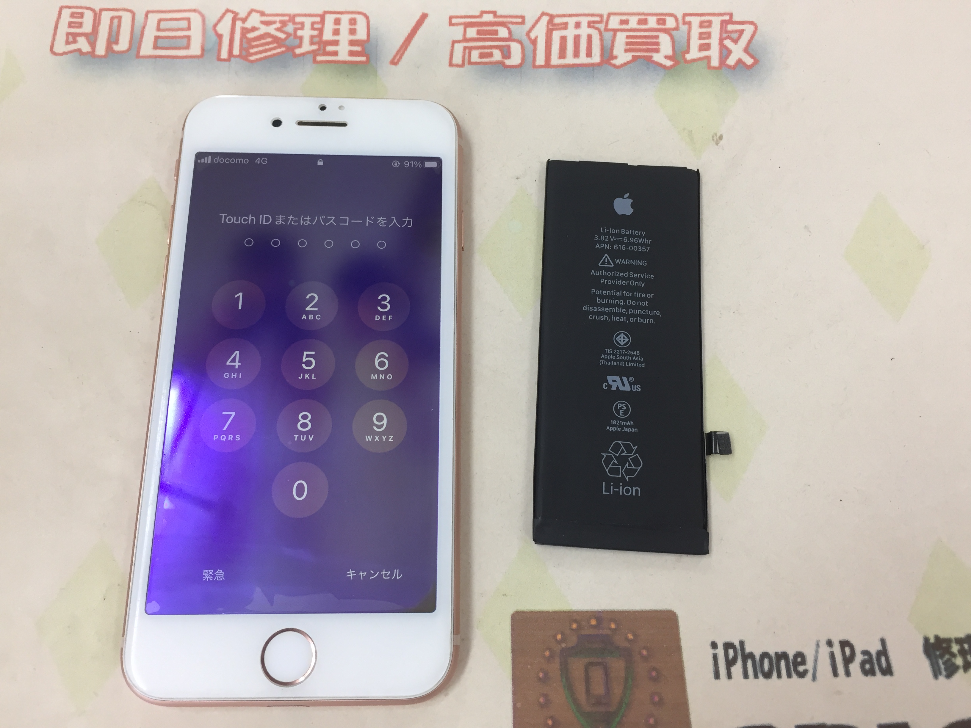 iPhone8 バッテリー交換 ¥6,800(税込)