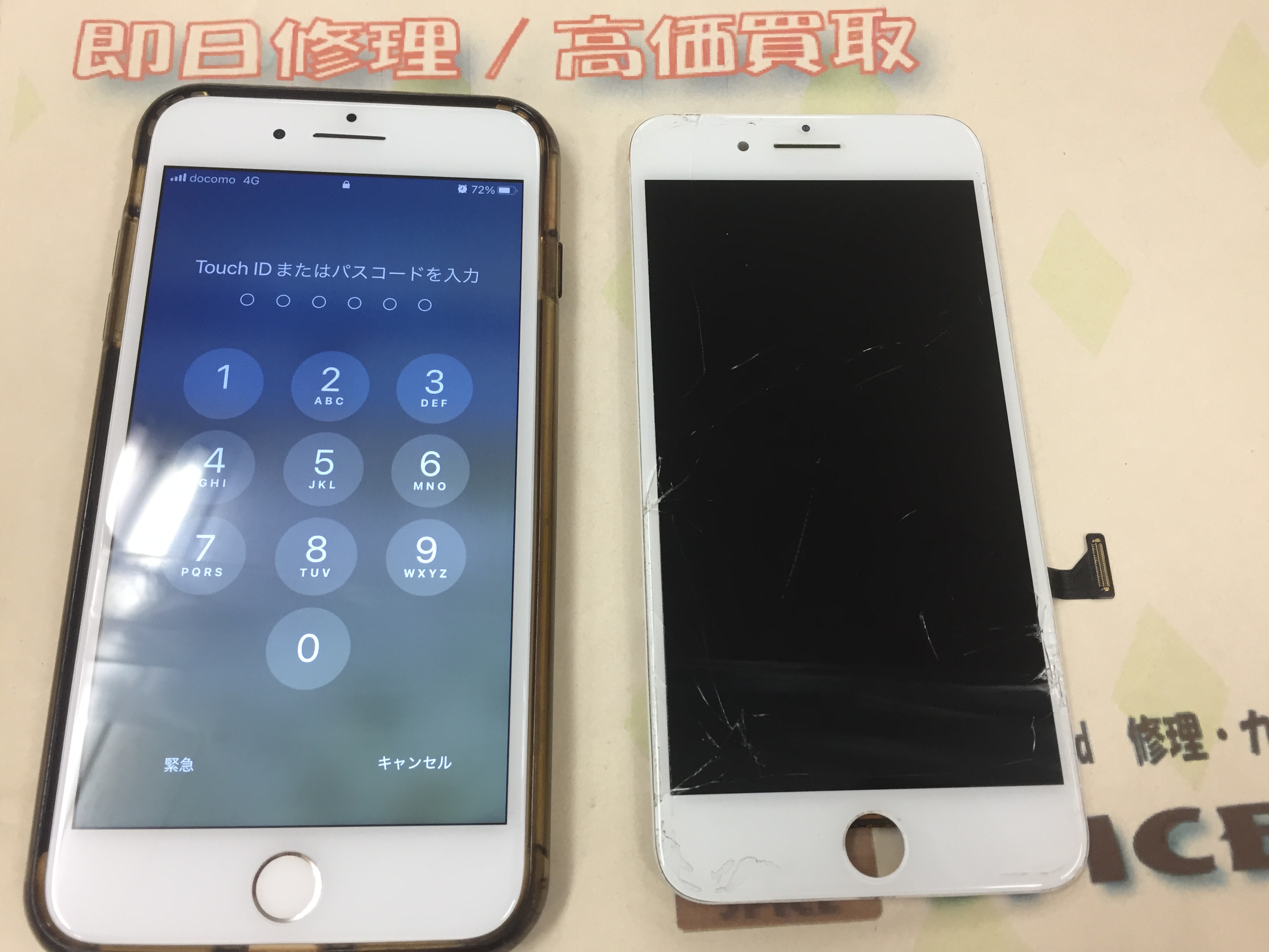 iPhone8 Plus ガラス割れ/タッチ不良 ¥8,000(税込)