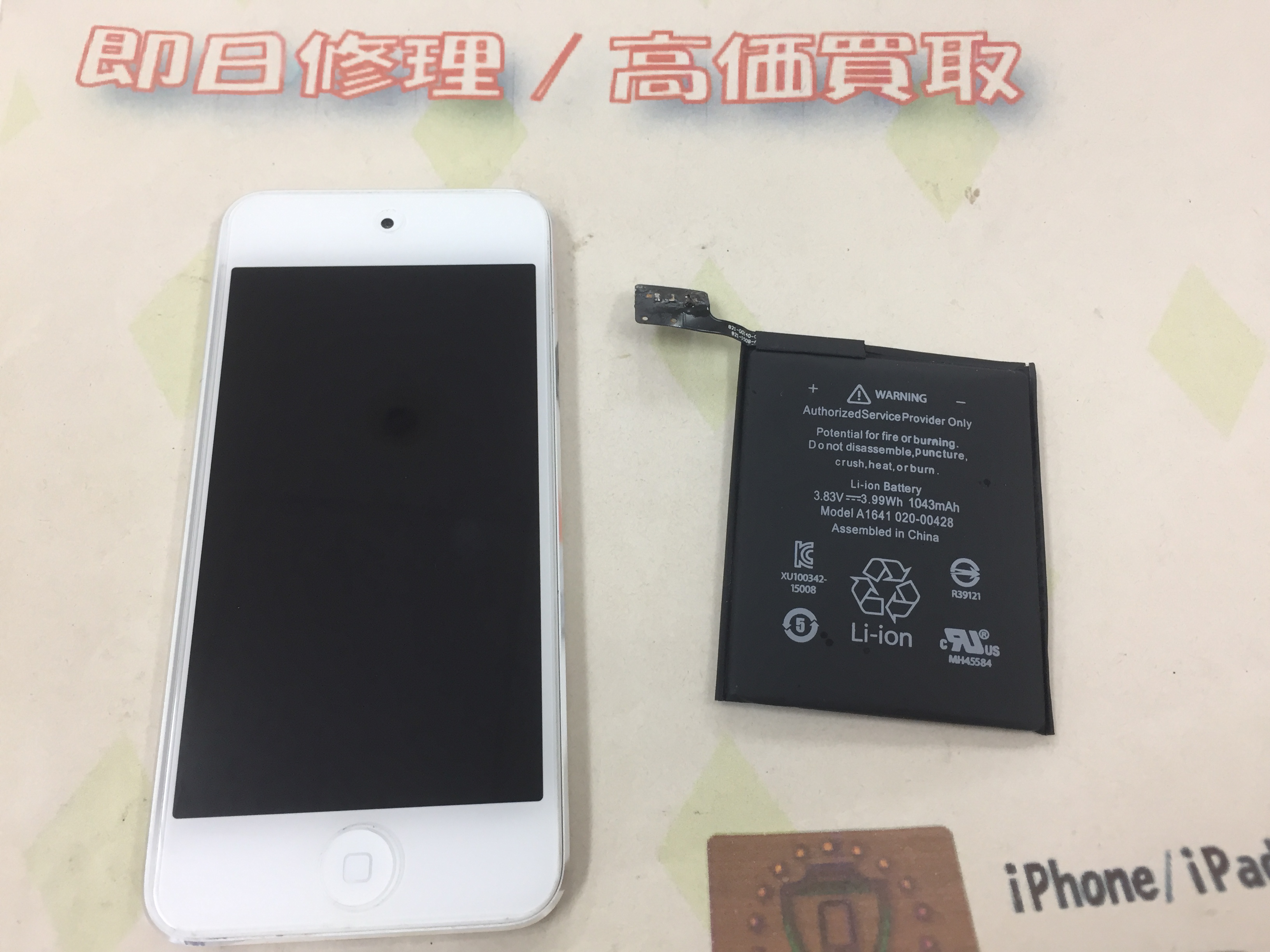 iPod touch6世代 バッテリー交換 ¥7,800(税込)