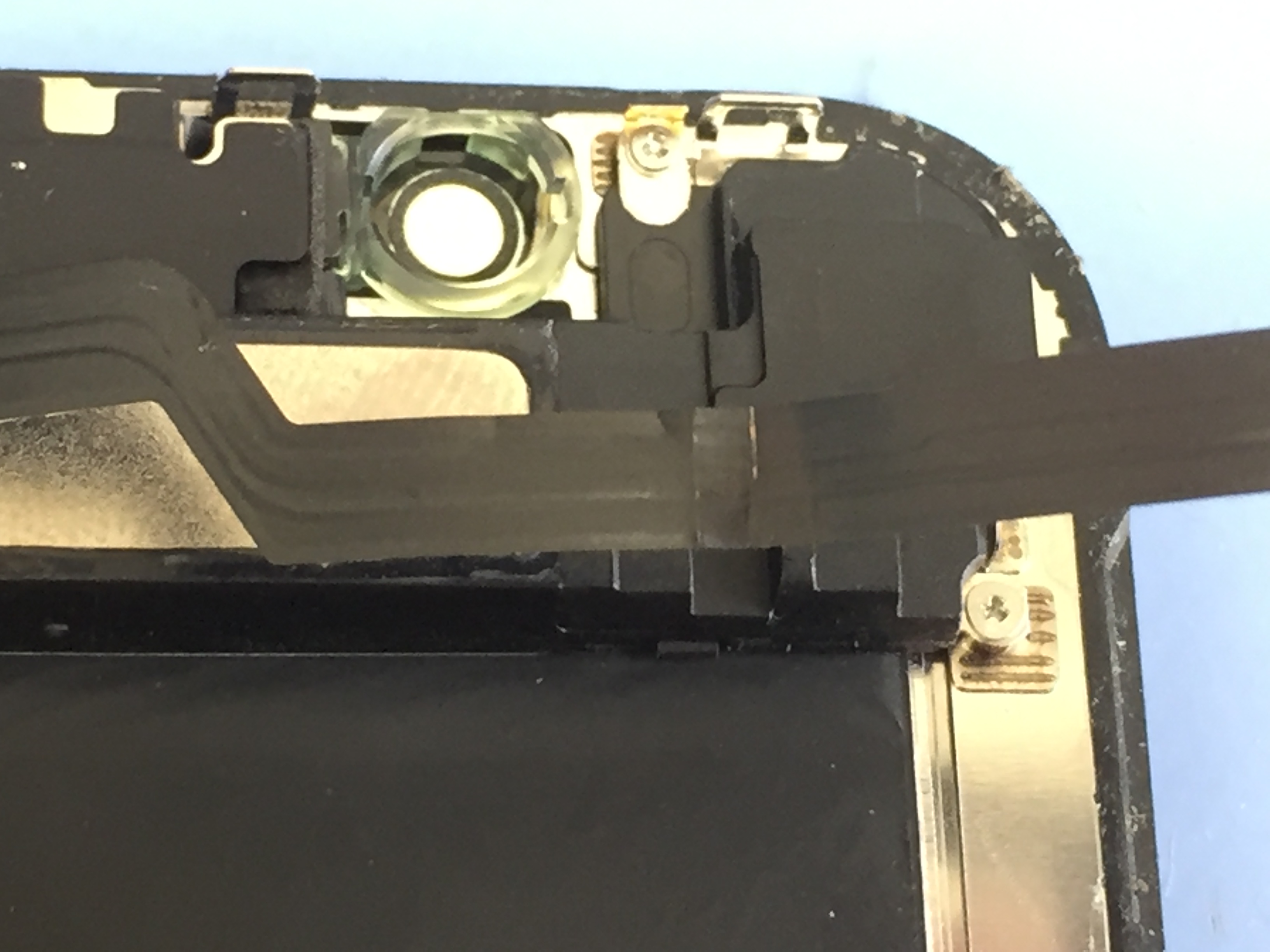 まずは分解し内部を確認すると画面上部に付いているインカメラなどが一体のセンサー部品に破損が見られました。