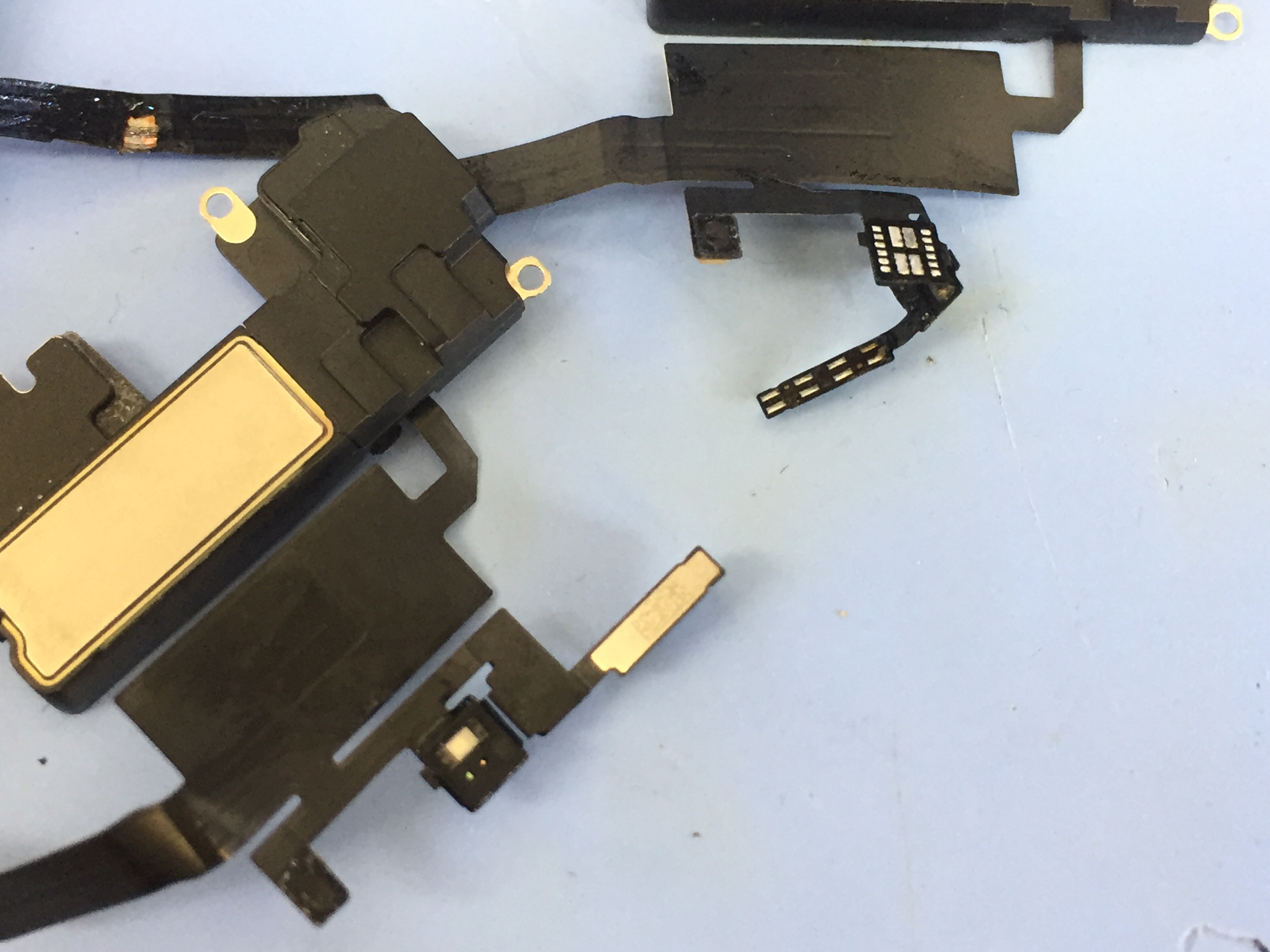 こちらの部品は複数のセンサー類、通話の際のスピーカーを本体に中継する役割、マイク、Face IDに関連する部分でもあり様々なパーツが一体になっているので破損すると通常使用は難しいです。