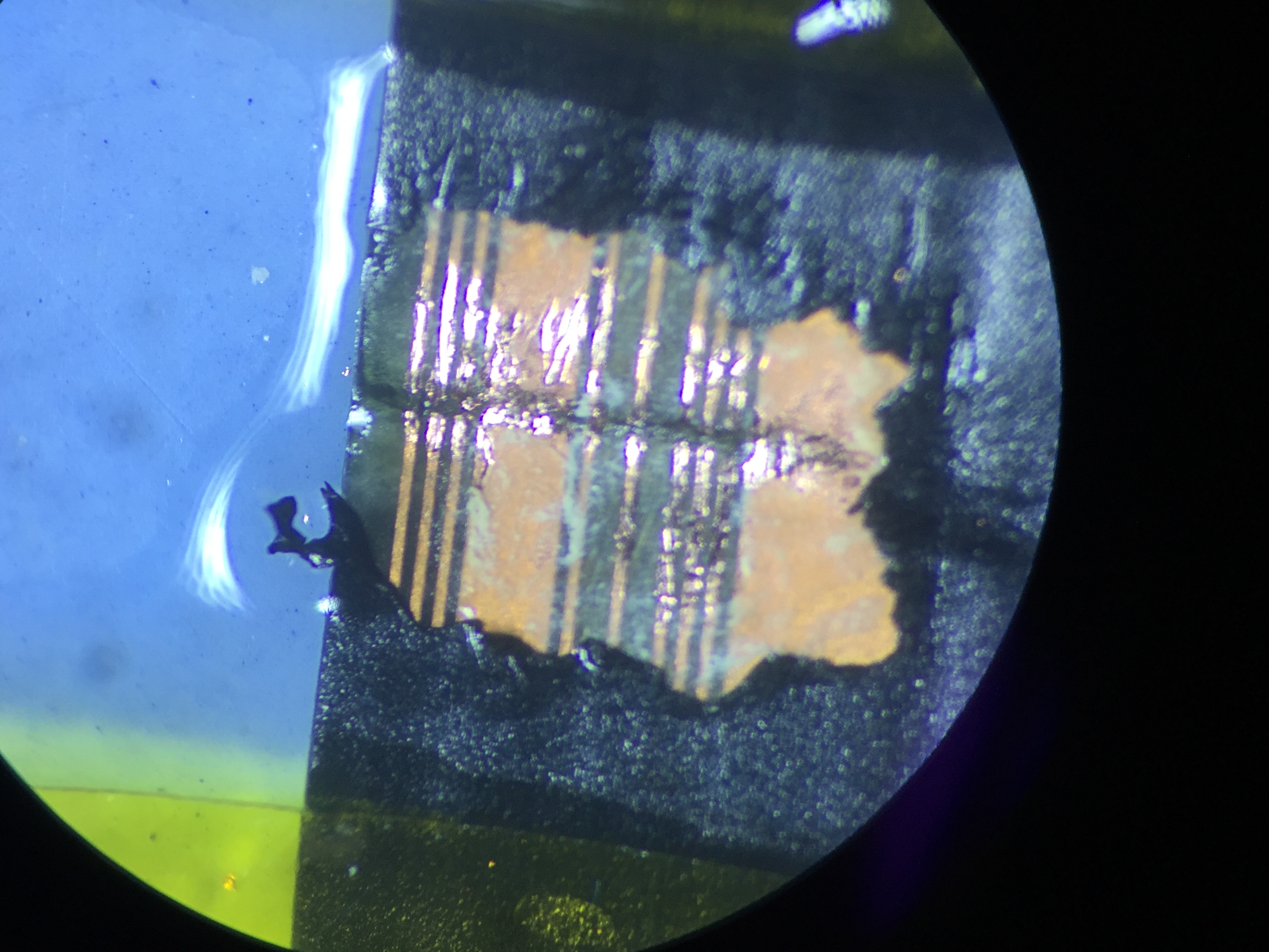 ケーブルの折れ曲がった部分に断線が見られ表面削ってみると回路が完全に切断されておりました。