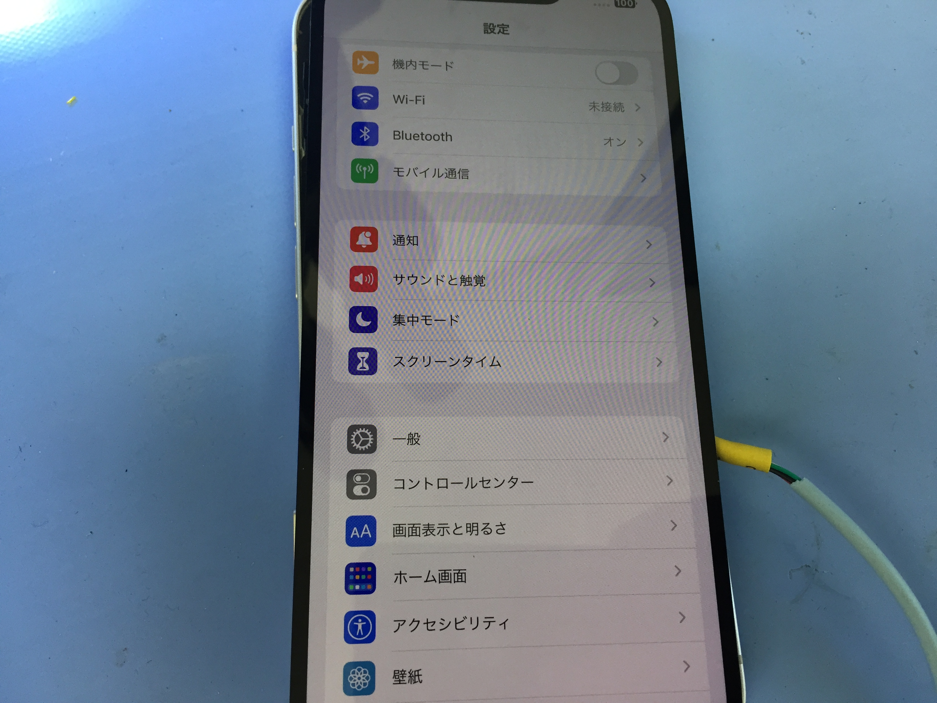 まず受付時に端末を確認しますがお持ち頂いた際も画面に何も表示一切起動していない状態でした。