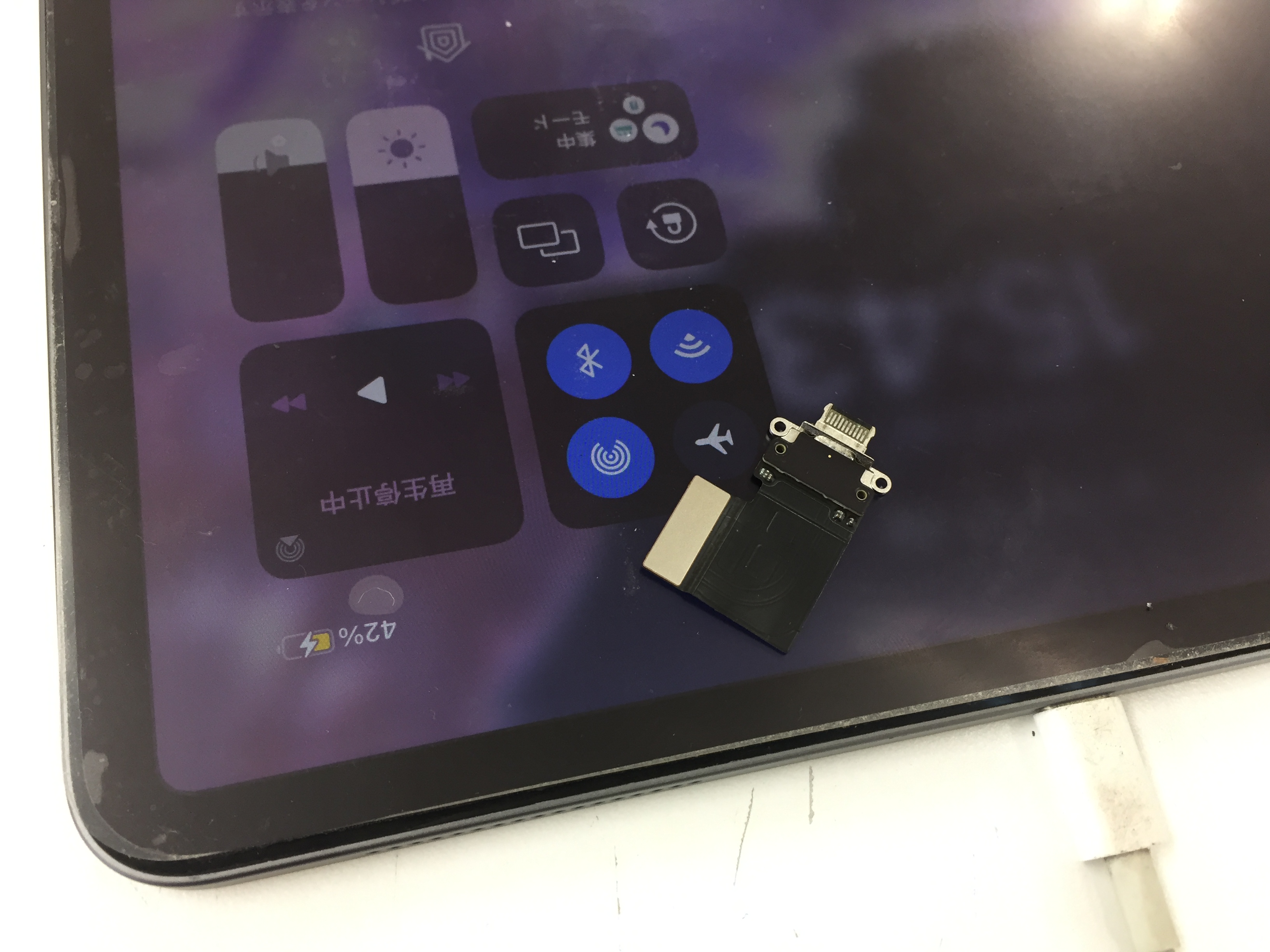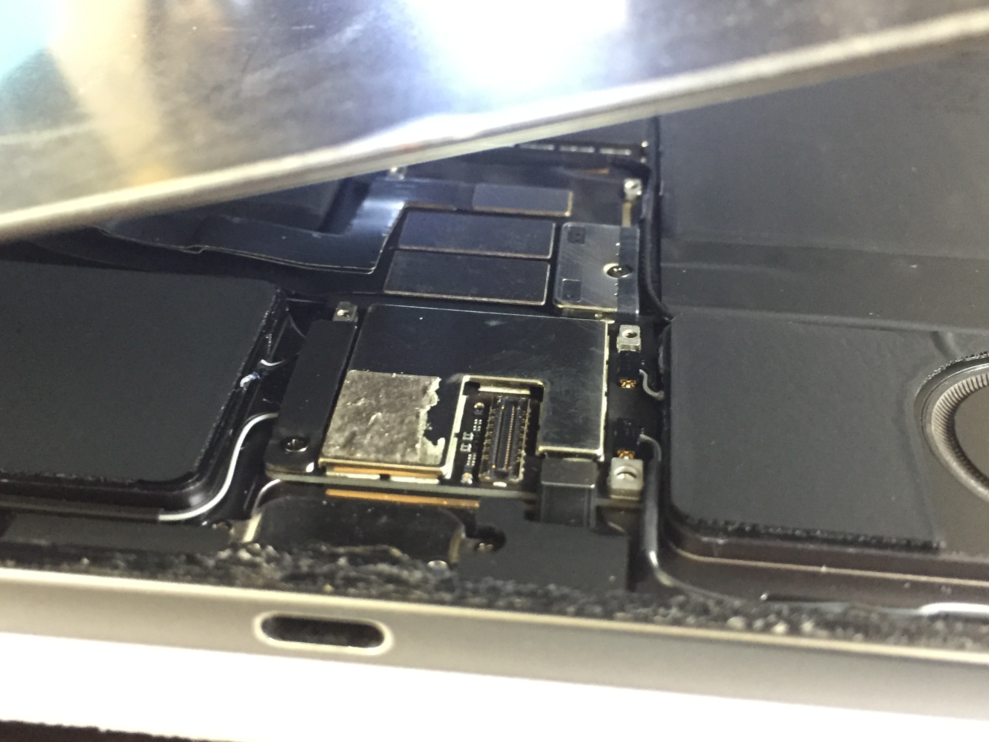 こちらの機種は画面パーツが非常に高価ですので分解時に画面を割らないよう慎重に作業しコネクター部品を新しい物に交換します。