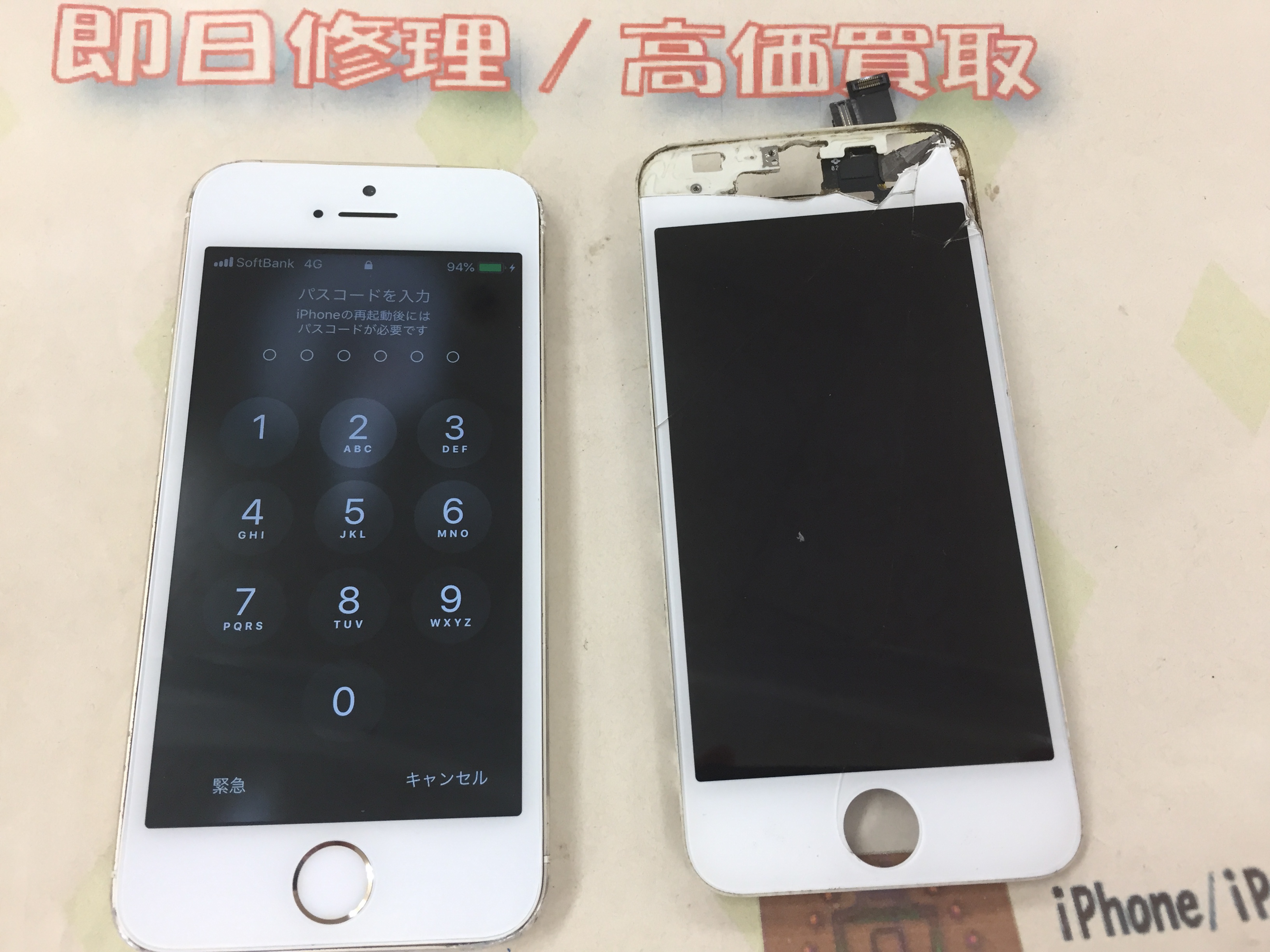 iPhone5s ガラス割れ/表示タッチ不良 ¥6,800(税込)