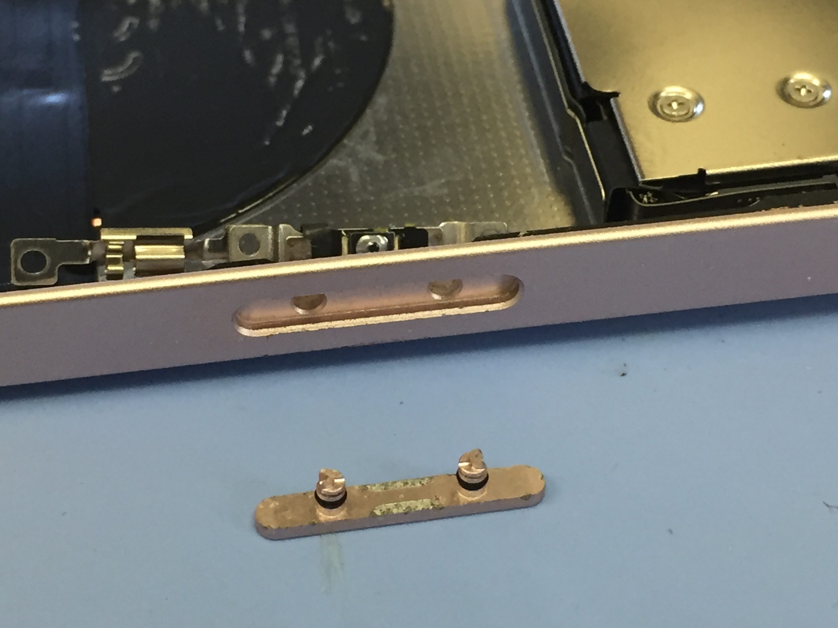 早速分解し確認すると電源ボタン部分に内部から汚れが固く固着しているのが確認出来ました。