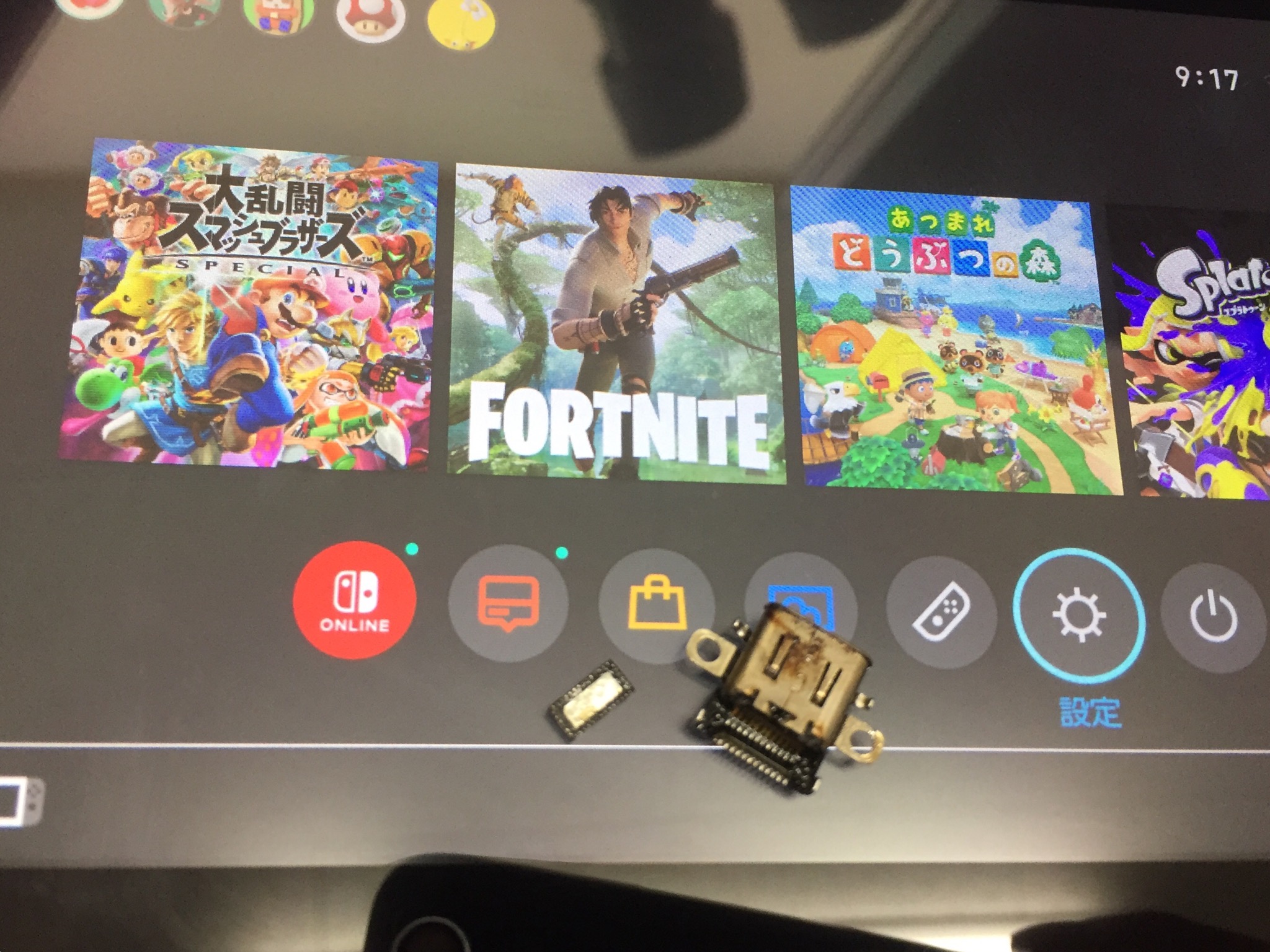 Switchのコネクター修理は基板に実装されており難しい作業となりますが当店では1時間程で交換可能です。