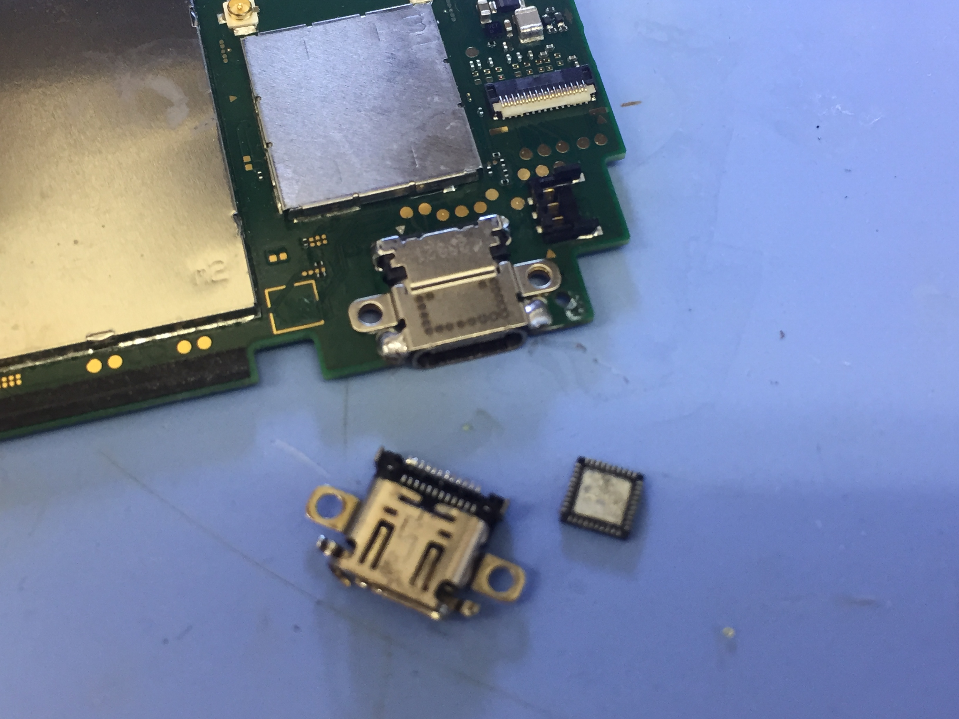 充電コネクターが損傷している状態で充電ケーブルを繋いでICがショートしてしまう場合も多々ある為、充電コネクターの状態によってはコネクターも同時に交換が必要となる場合(追加料金は不要)がございます。