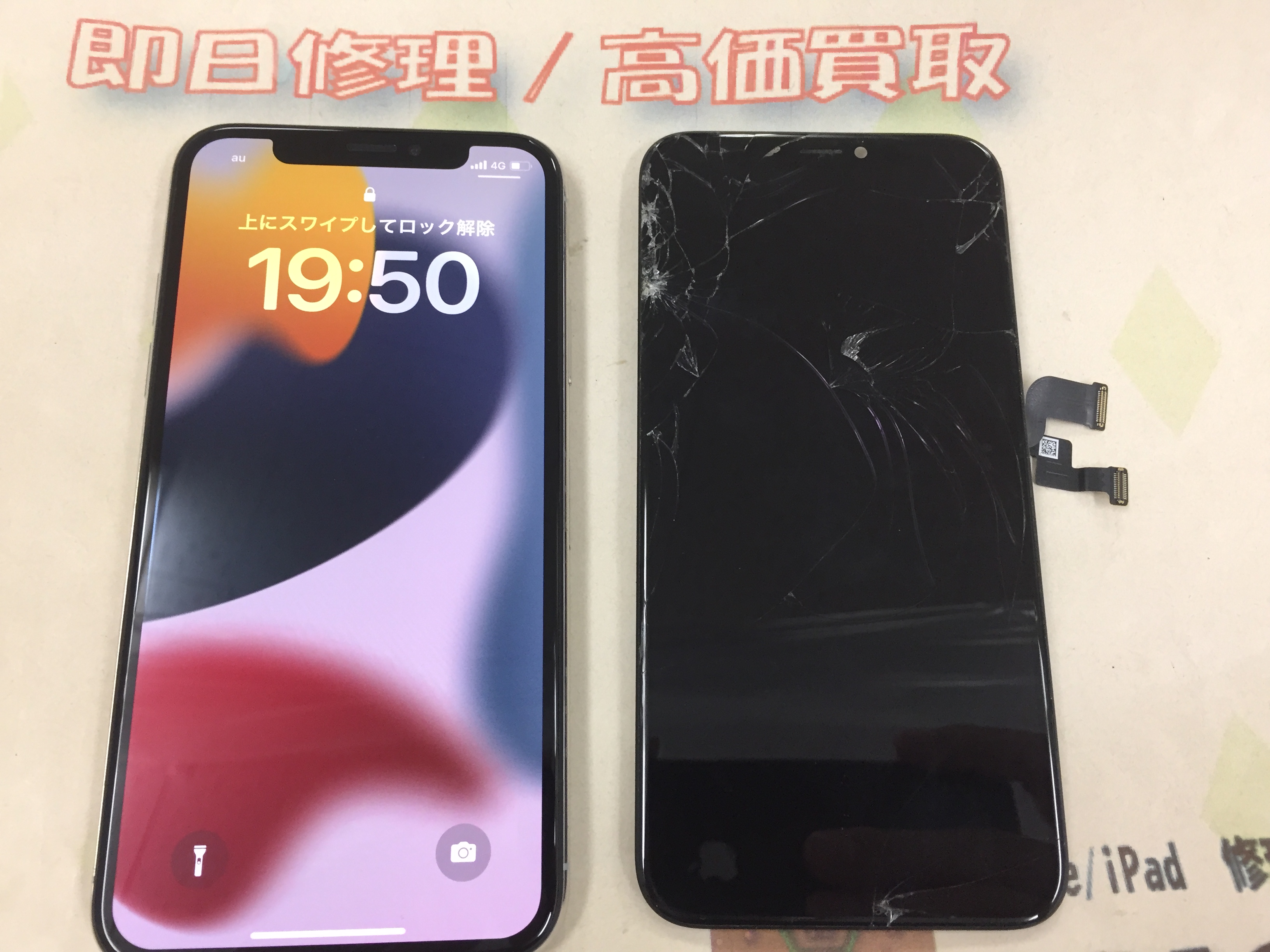 高砂市よりiPhone X ガラス割れ/タッチ不良でご依頼いただきました。