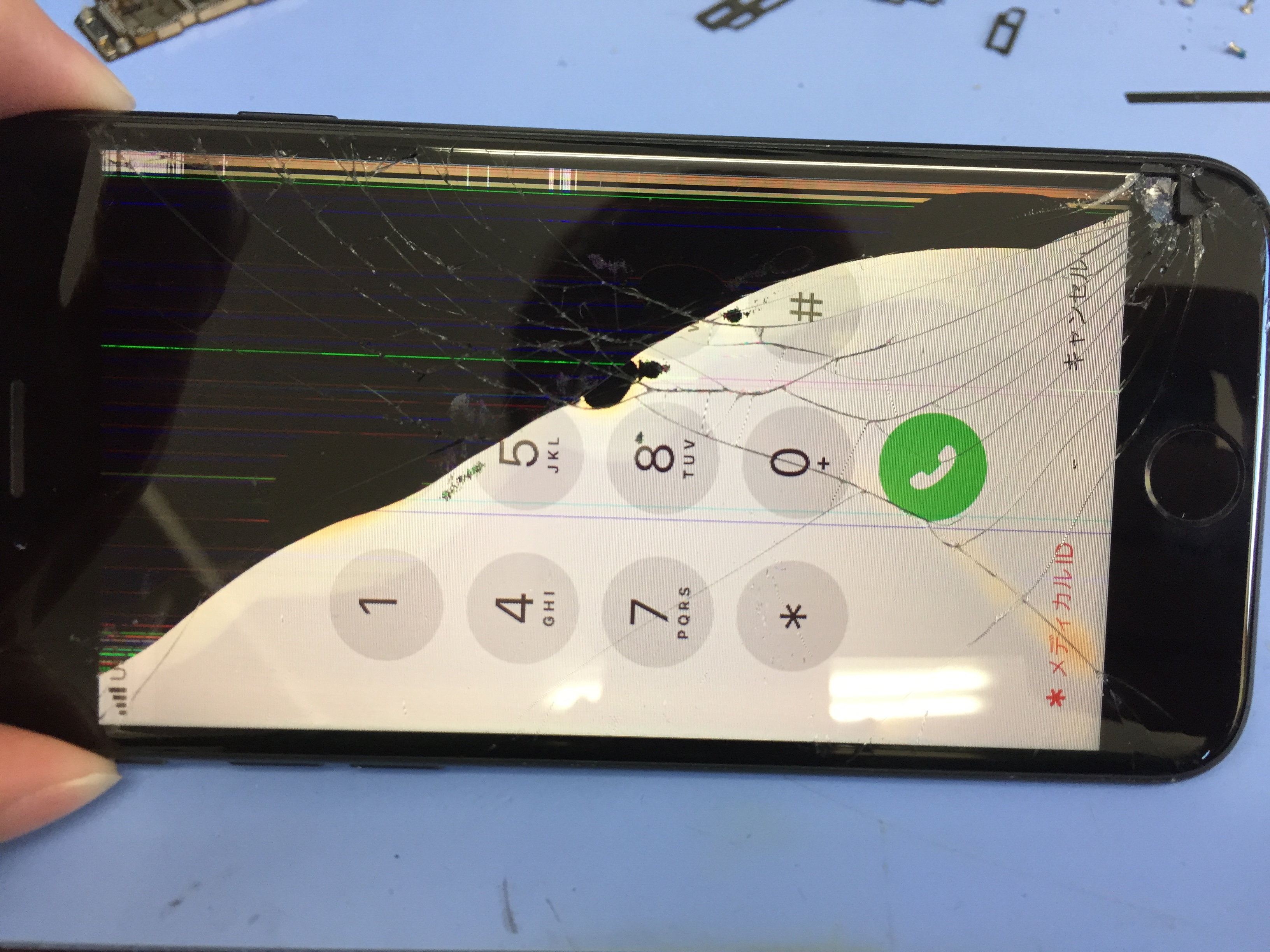 ガラス割れの影響で液晶不良となりタッチパネルも勝手に反応したりの状態でした。