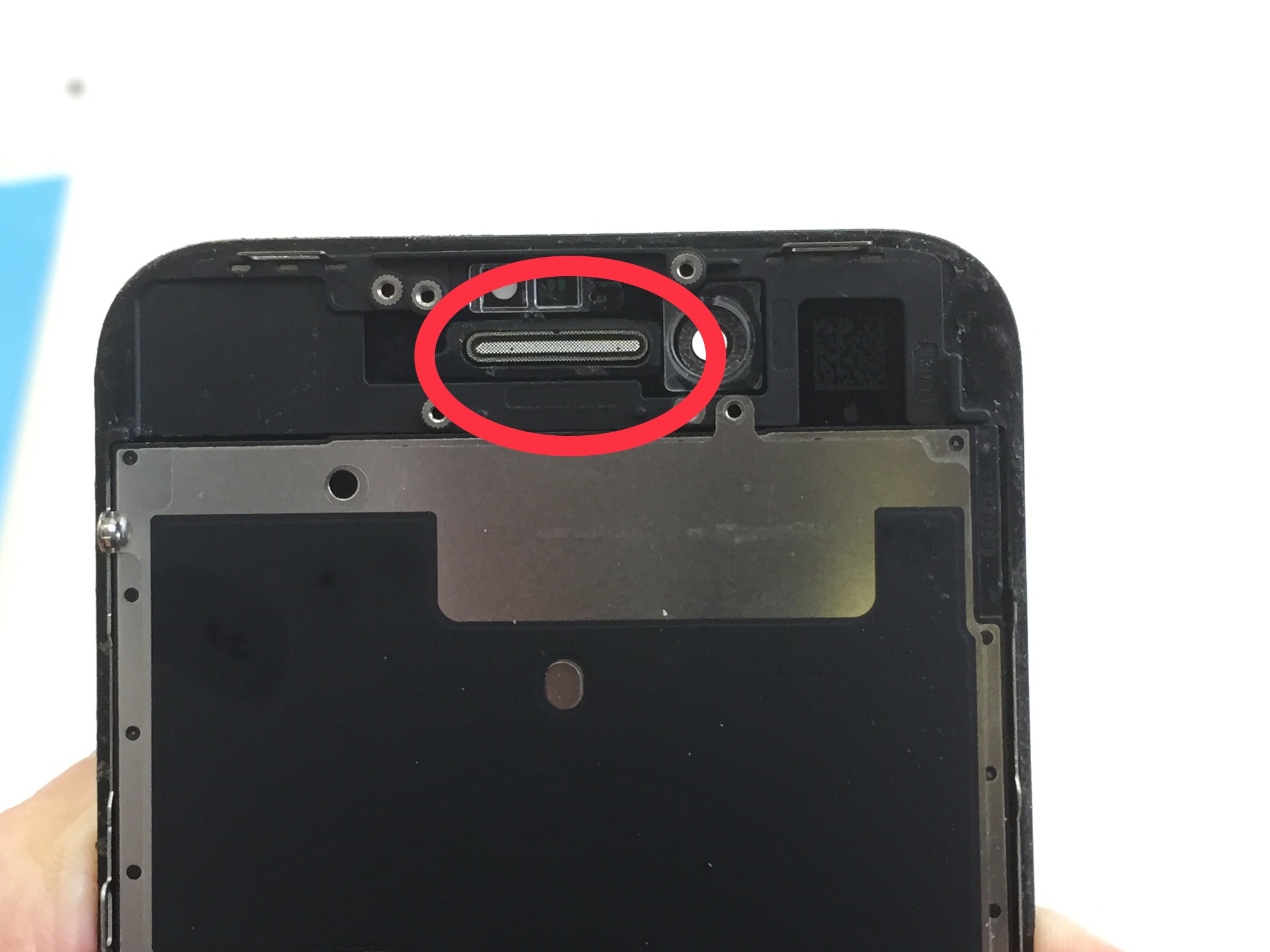 原因として考えられるのはスピーカー部分のメッシュが汚れで目詰まりしてしまっているケース、イヤースピーカー部品の故障が挙げられますがスピーカー部品の故障は滅多にありませんのでメッシュの目詰まりが可能性としては高い症状です。