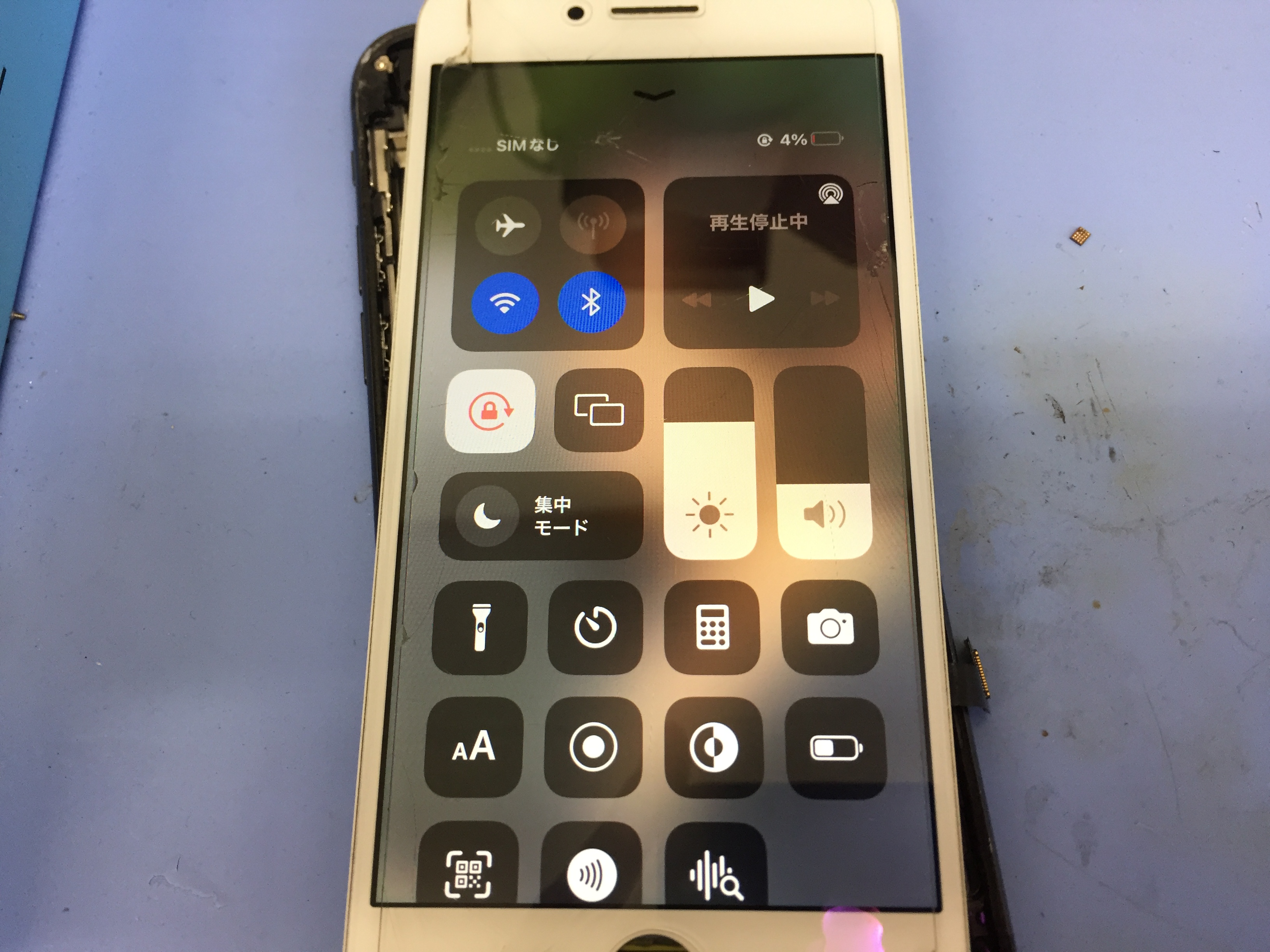 こちらの修復を行い起動は出来るようになったもののテスト用の画面を取り付けても液晶が一切表示されず、まだ若干の漏電がございました。