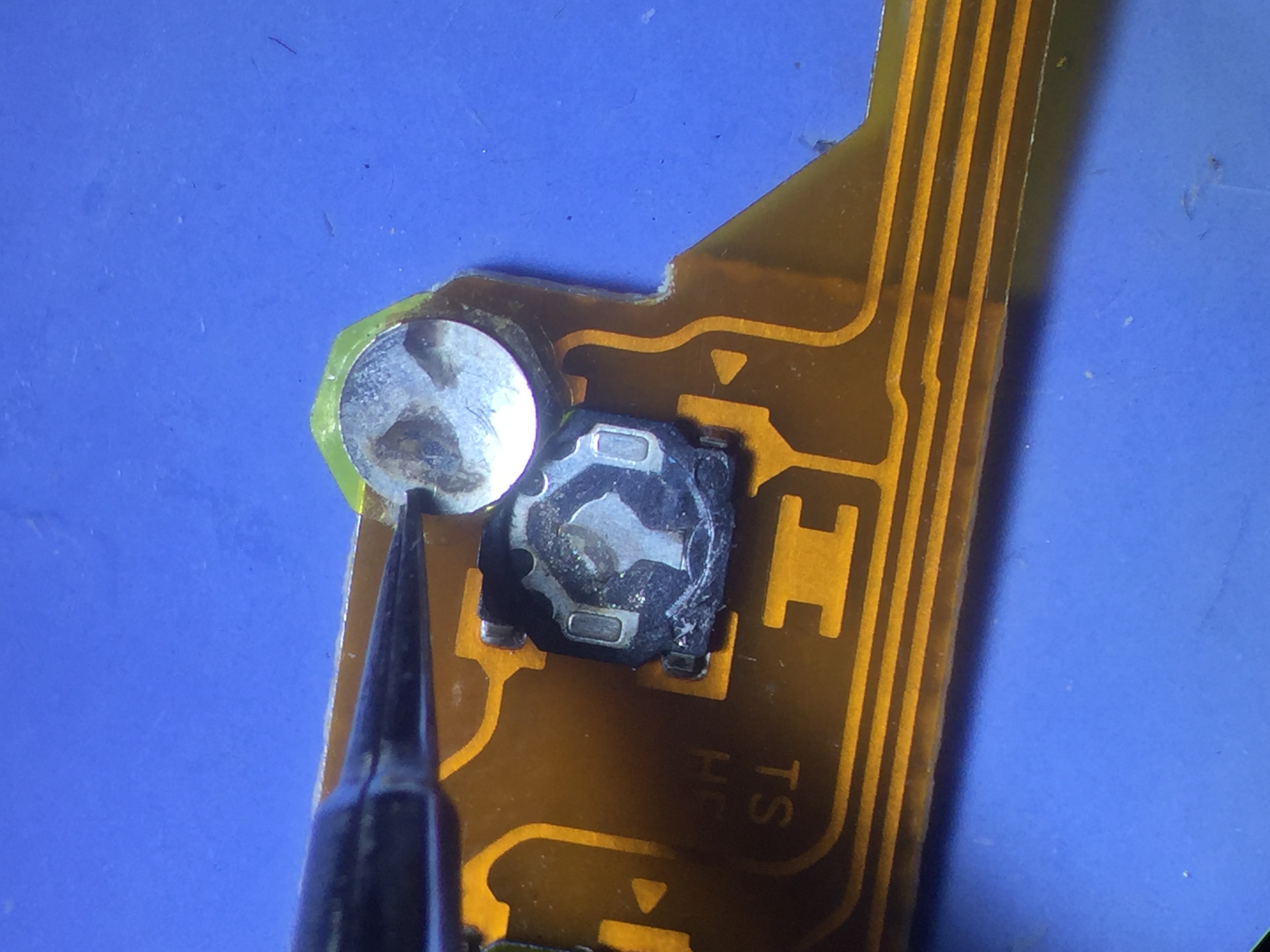 電源ボタンを分解すると腐食と焦げがあり、こちらも交換すると料金上がりますのでクリーニングを行い無事に改善しました。