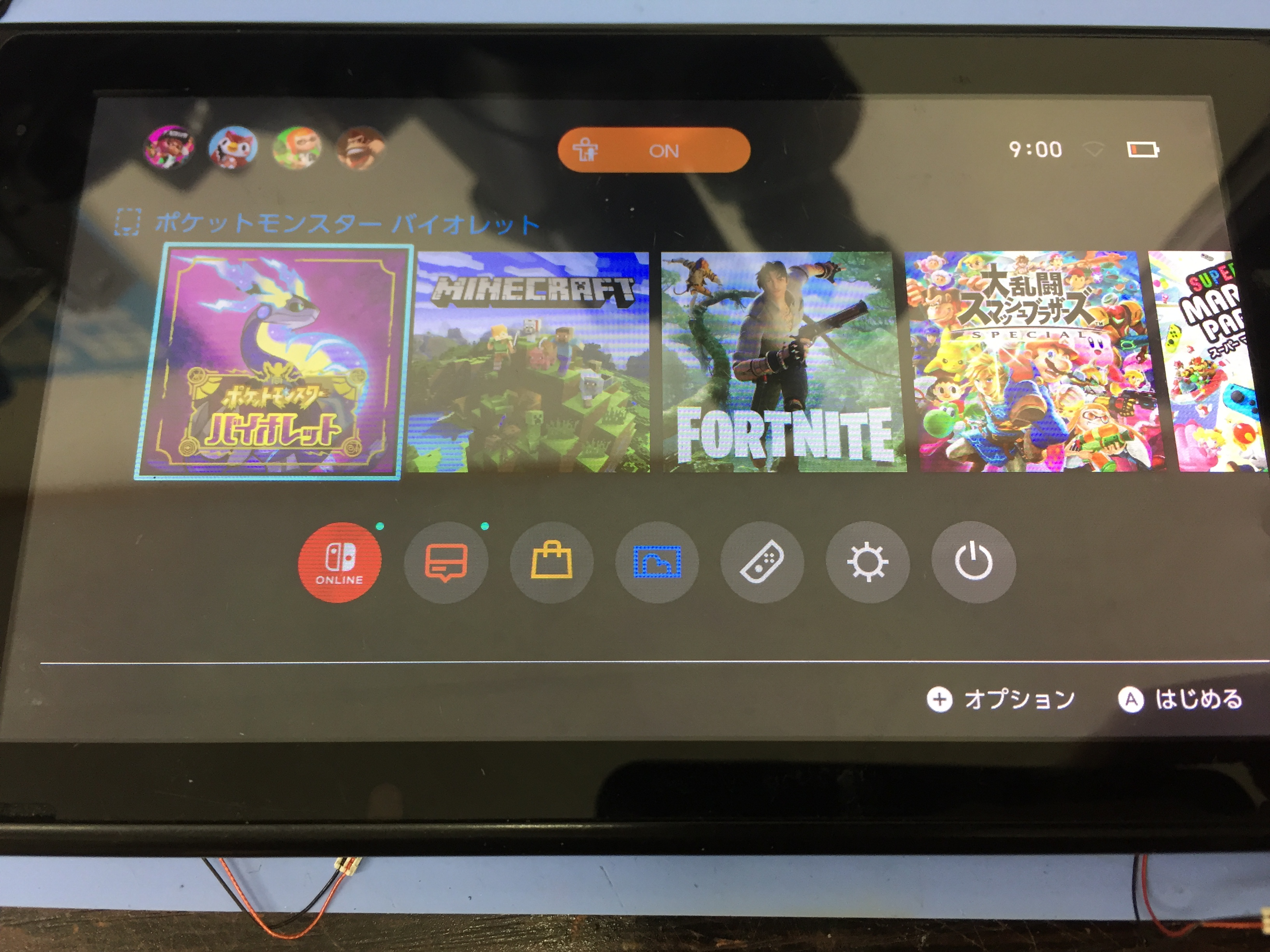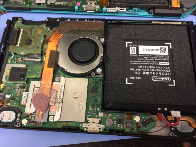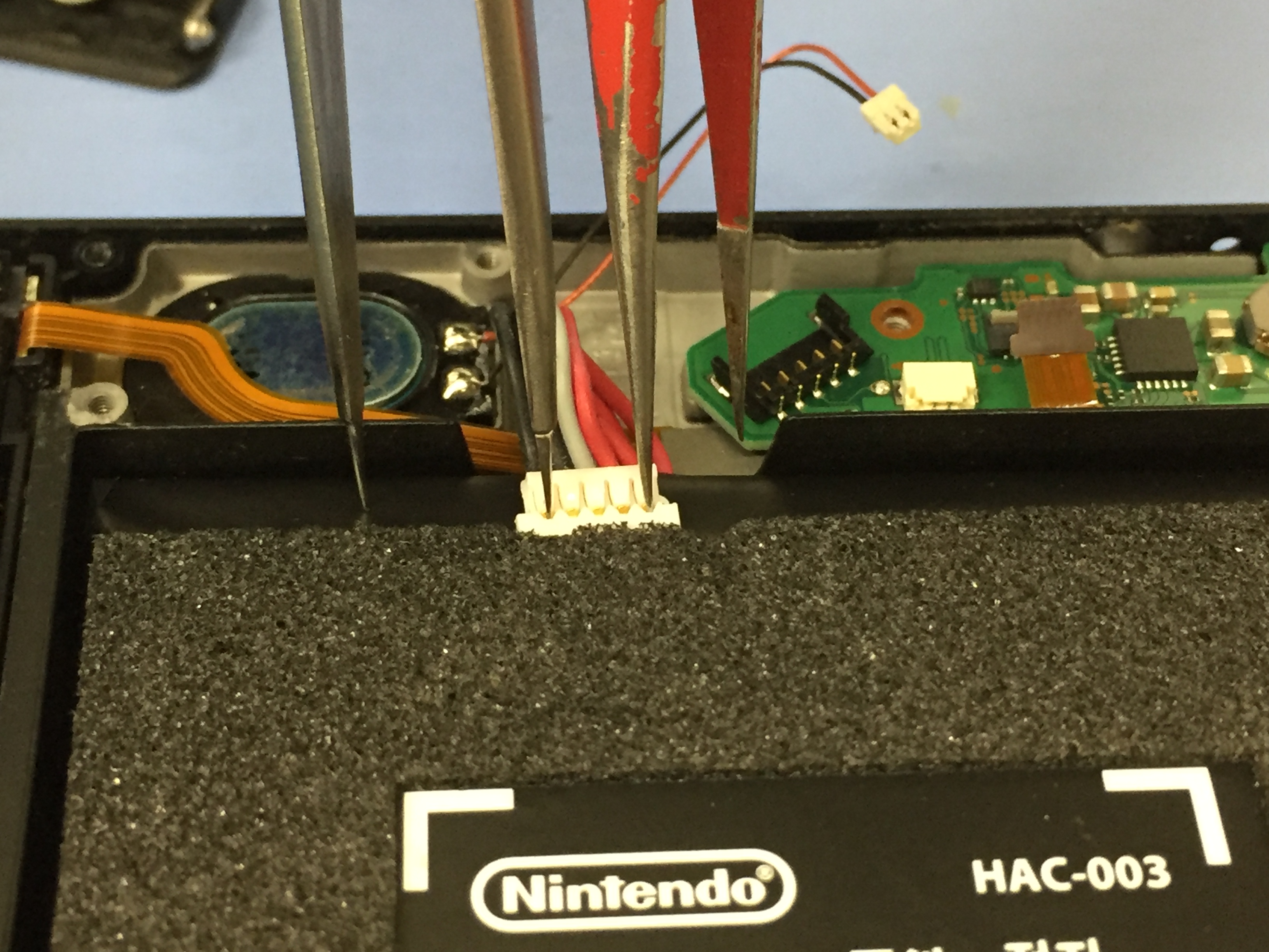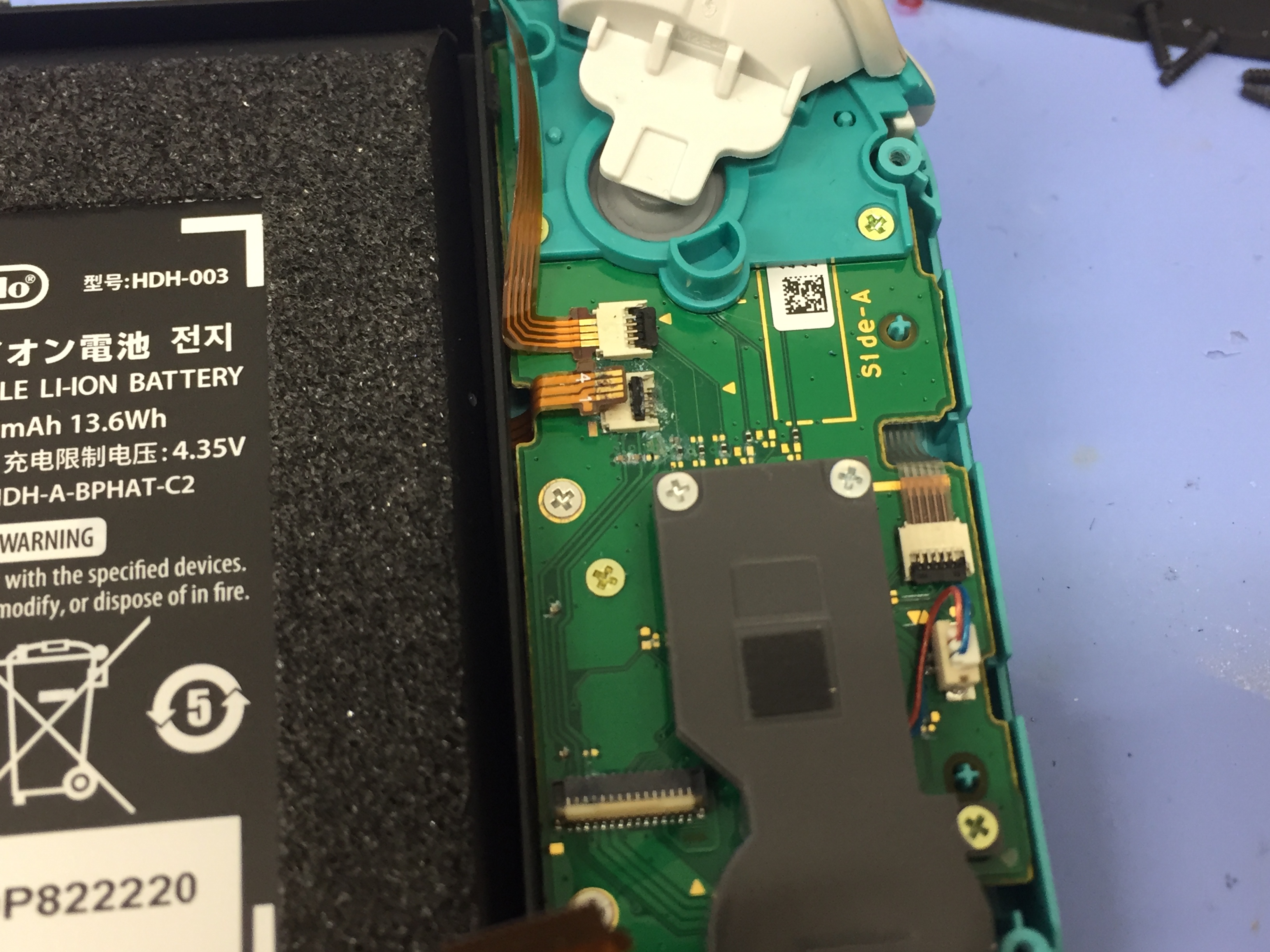 作業後に動作確認を行うとSwitchはバッテリーの回路保護が機能し電圧が通常の半分程度しかなく起動しません。
