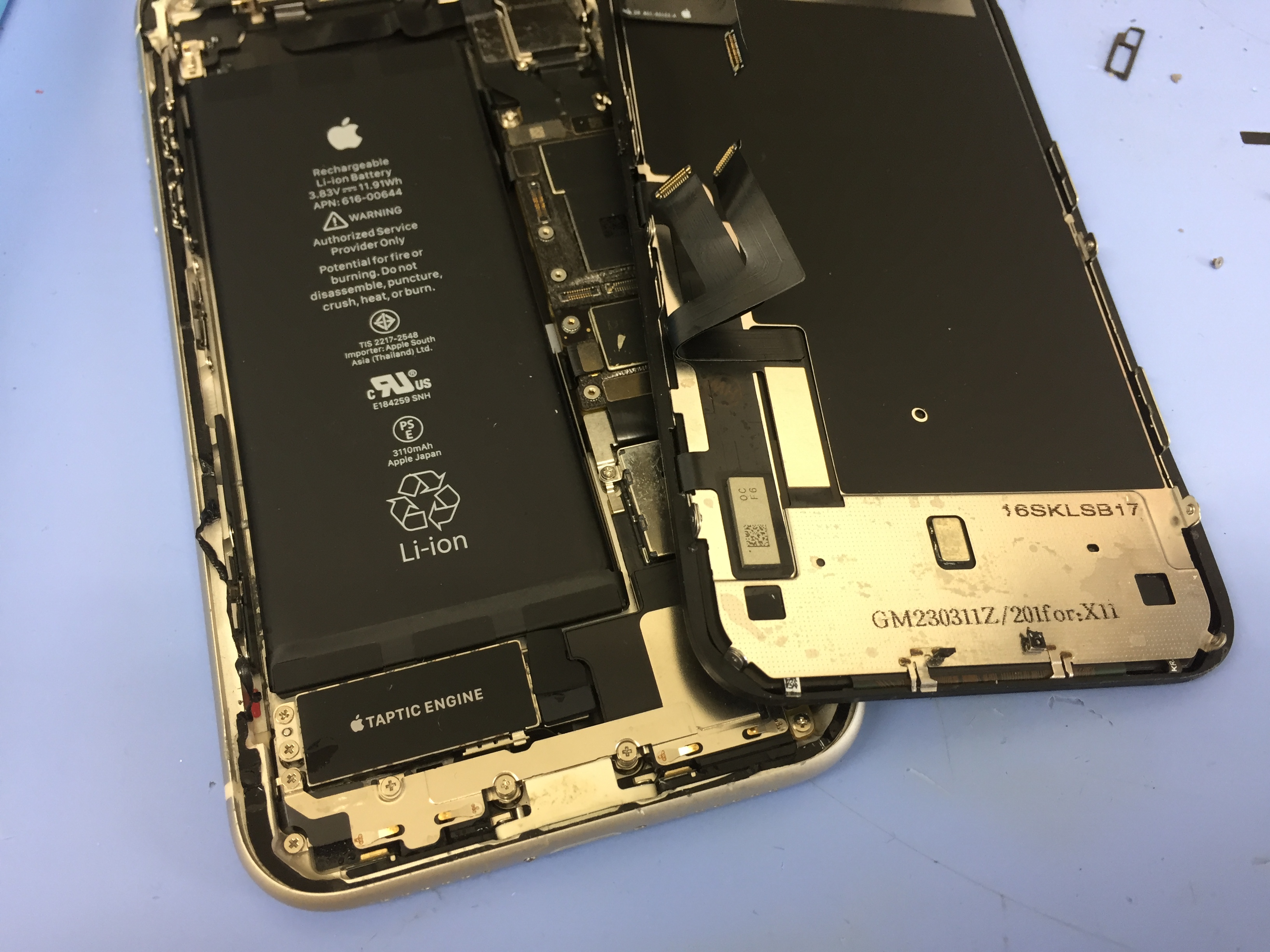 水没し画面の表示おかしくなり電源が切れるようになってしまったとご来店です。