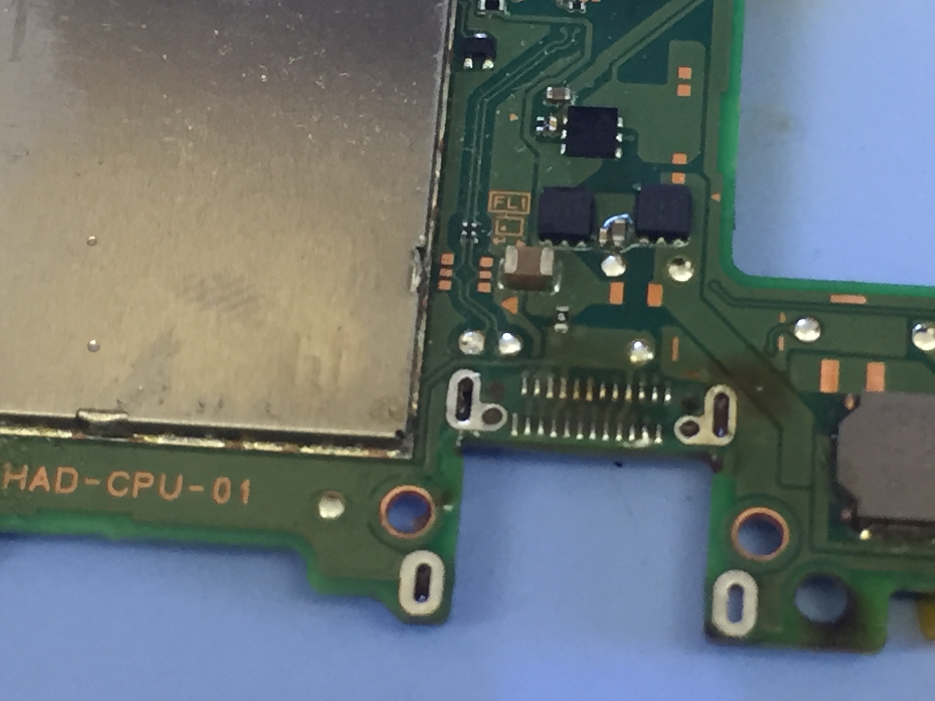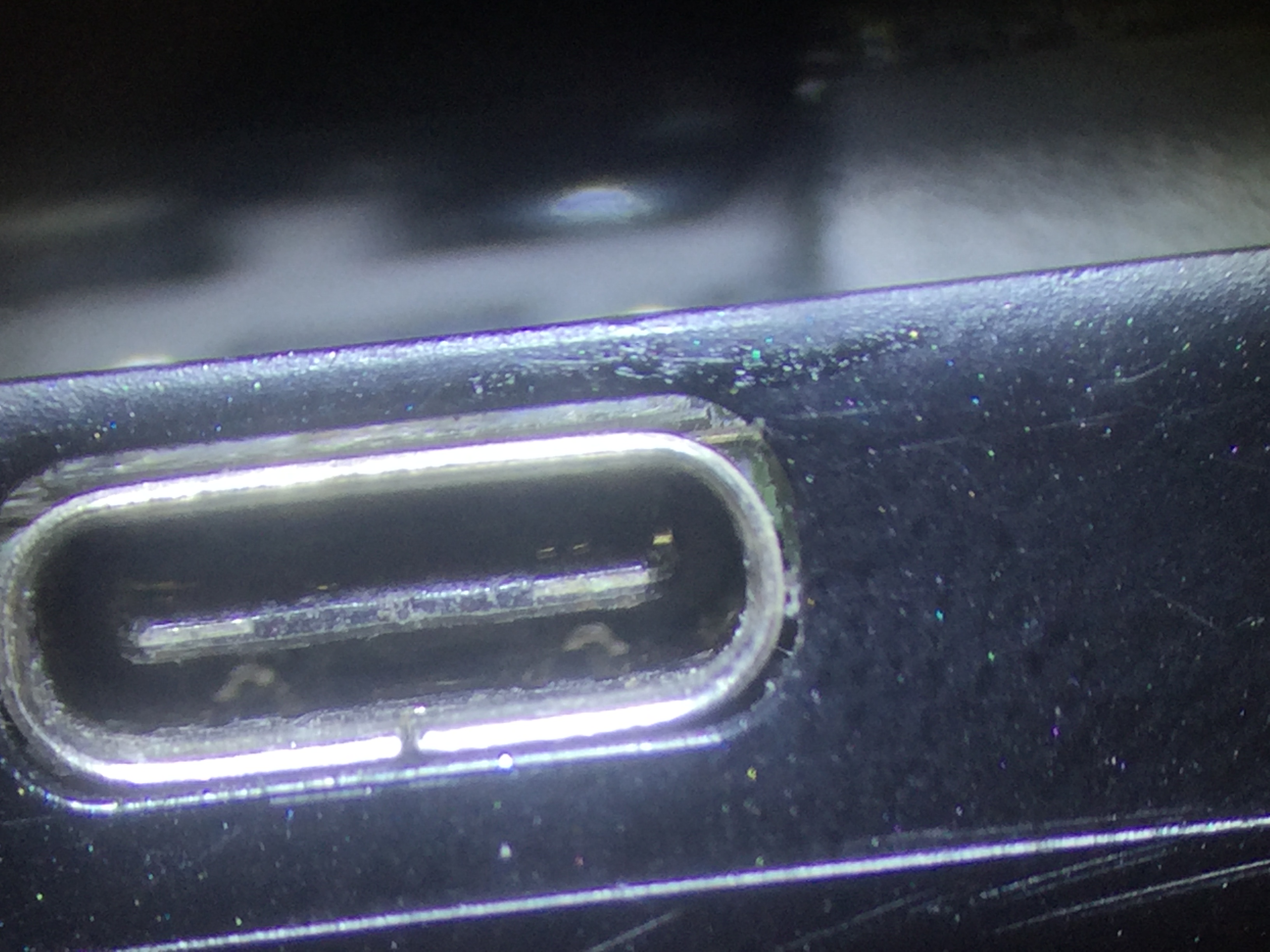 充電コネクターがグラグラしている、コネクター内の端子がこのようにボロボロになっている状態で充電ケーブルを挿し込んでしまうと剥がれた端子同士が接触しメイン基板がショートしてしまう可能性が非常に高いのでご注意下さい。