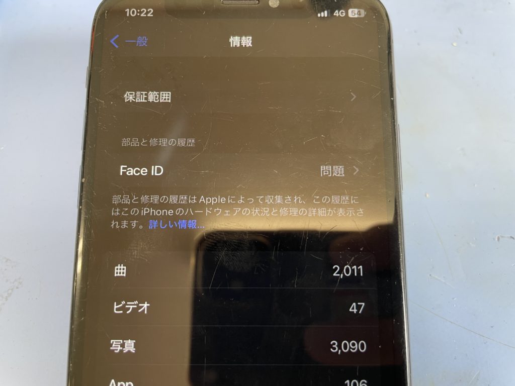 設定画面を確認するとFace ID 問題と表示されており、Face ID登録画面を見るとTrue Depthカメラで問題が~とエラー表示が出ており登録が出来ませんでした。