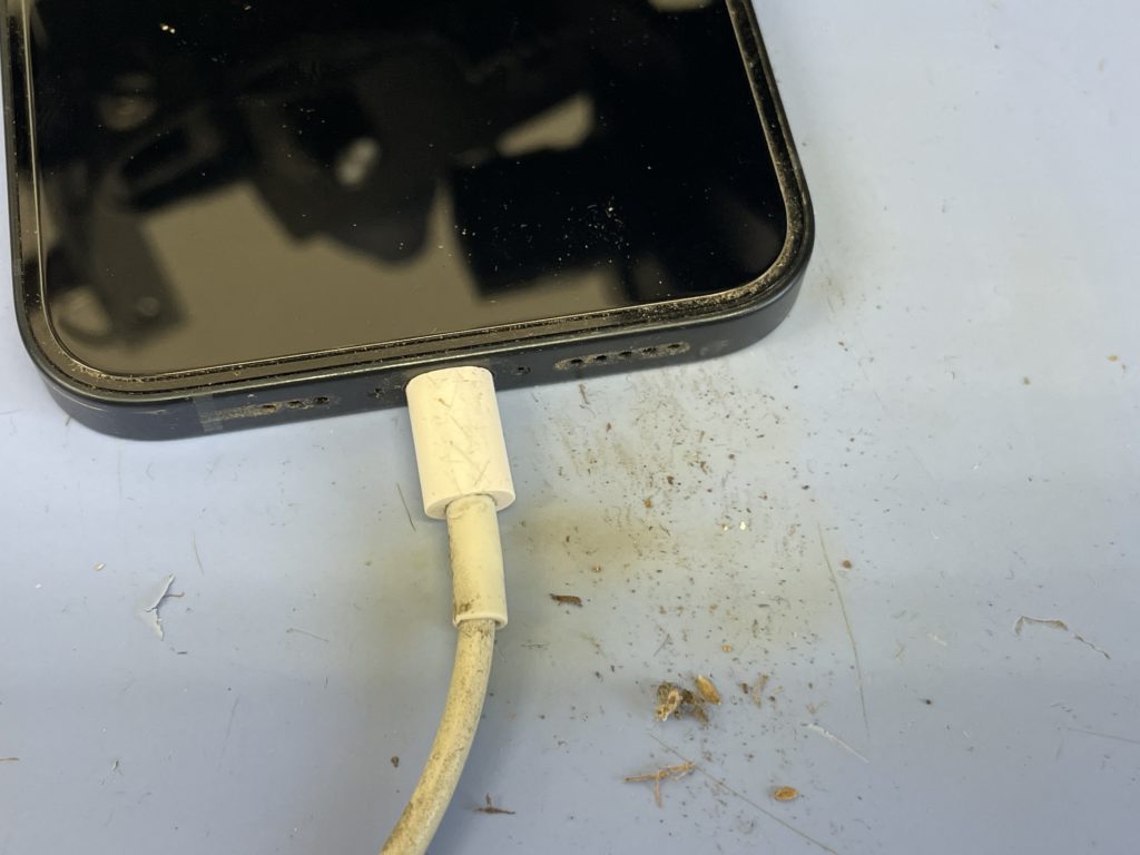 まずはコネクターに詰まっていた小石やゴミを取り出して充電反応があるか確認します。