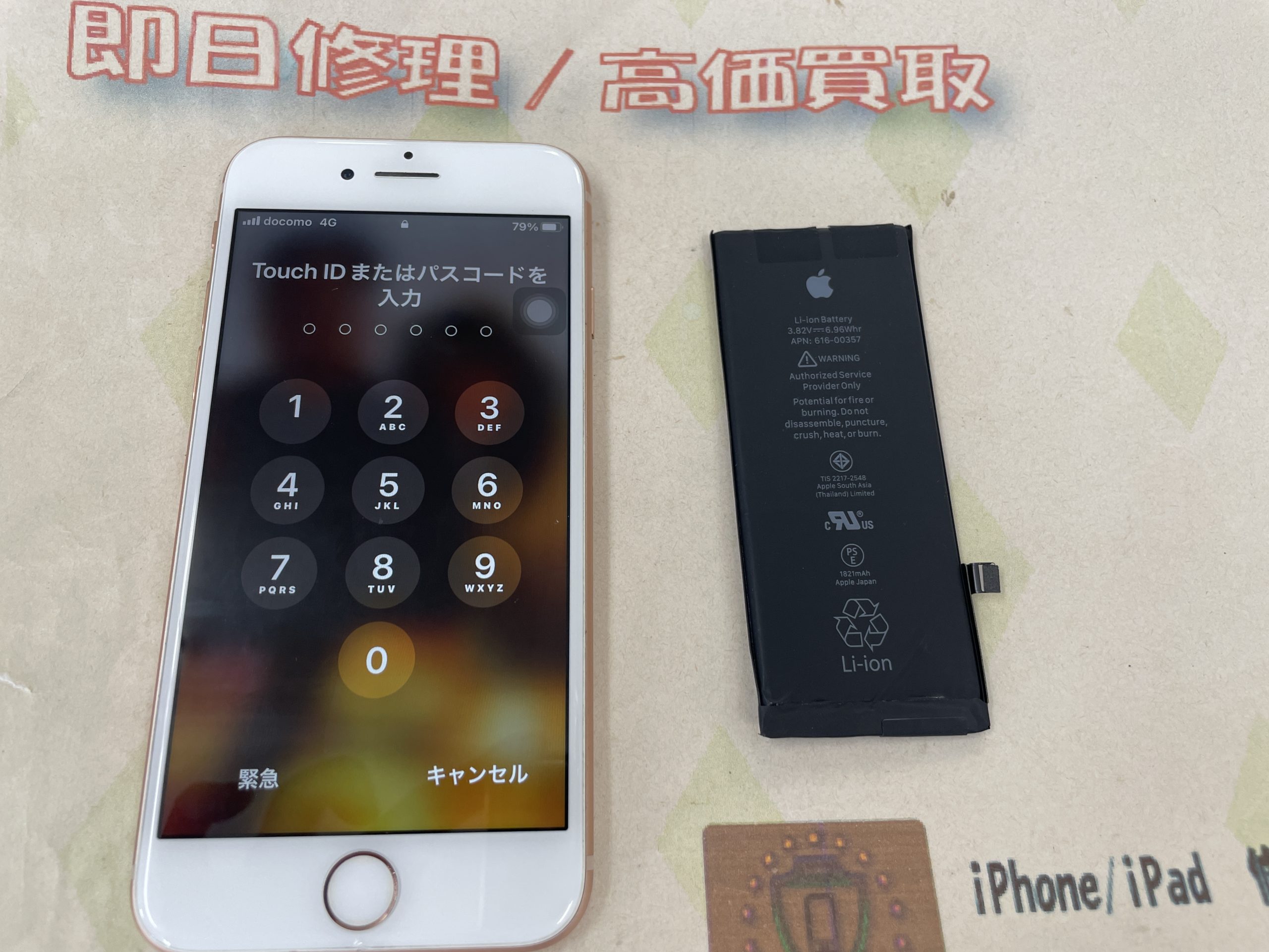 iPhone8 バッテリー交換 ¥6,800(税込)