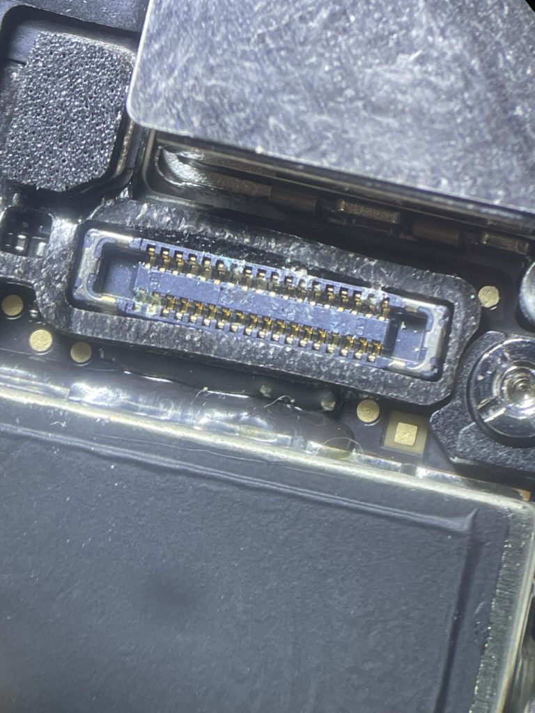 基板、画面側のスピーカーケーブルをチェックするとちょうどコネクター周りに水濡れによる腐食が多数見られました。