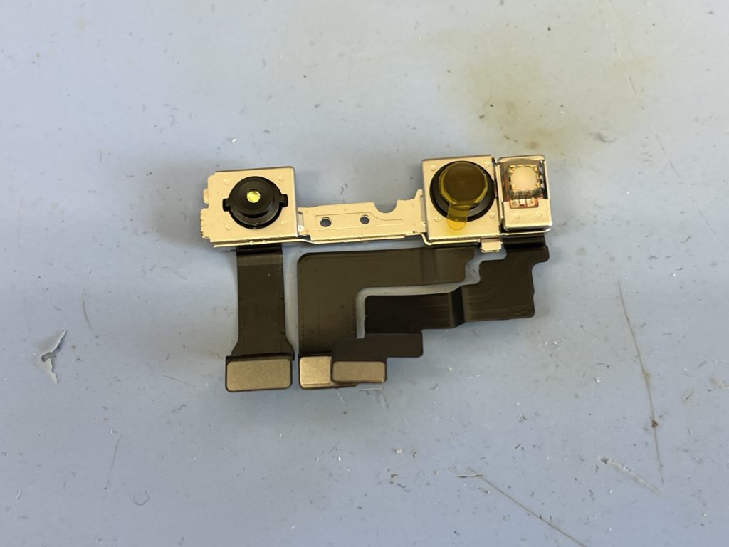 iPhone X以降の機種はインカメラとFace ID関連のパーツが一体になっているので今回のようにインカメラが故障すると基本的にFace ID関連のパーツも一式で交換となります。