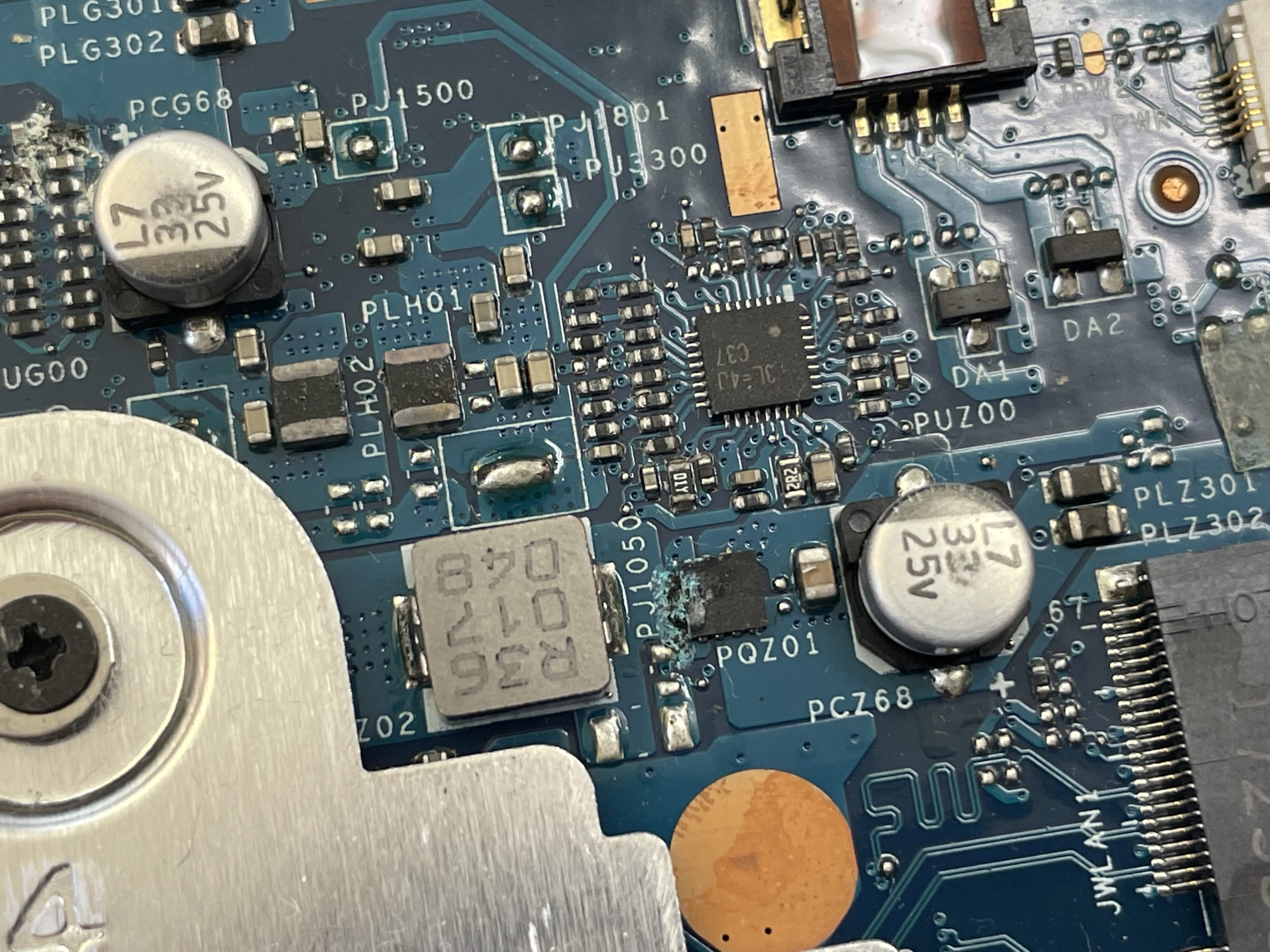 ノートパソコン 水没により起動不可→内部洗浄+断線箇所のジャンパー処理 ¥6,800(税込)