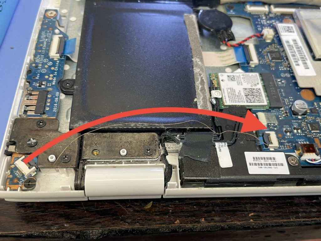 今回は断線している回路を0.1ミリの細いワイヤーで繋ぎ合わせる処置を行い無事に電源ボタン押すと起動するようになりました。