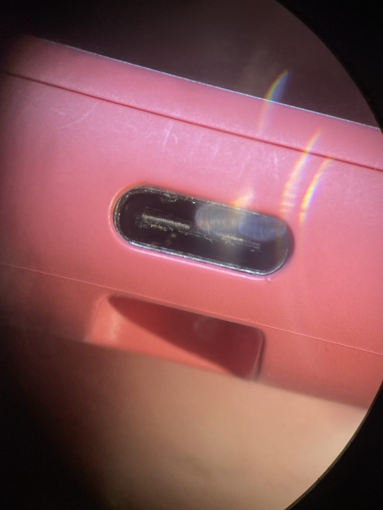 このようにコネクター内の端子が剥がれている状態で充電ケーブルを挿し込んでしまうと剥がれた端子同士が接触しメイン基板がショートしてしまう可能性が非常に高いのでご注意下さい。