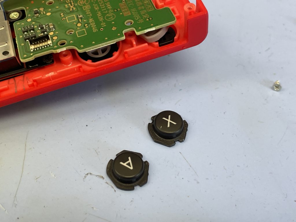 症状は本体に接続してロックボタンを押さなくてもジョイコンが抜けてしまう、左のジョイコンは➡ボタン、右のジョイコンはAとXボタンが固く押し感がおかしくなっておりました。