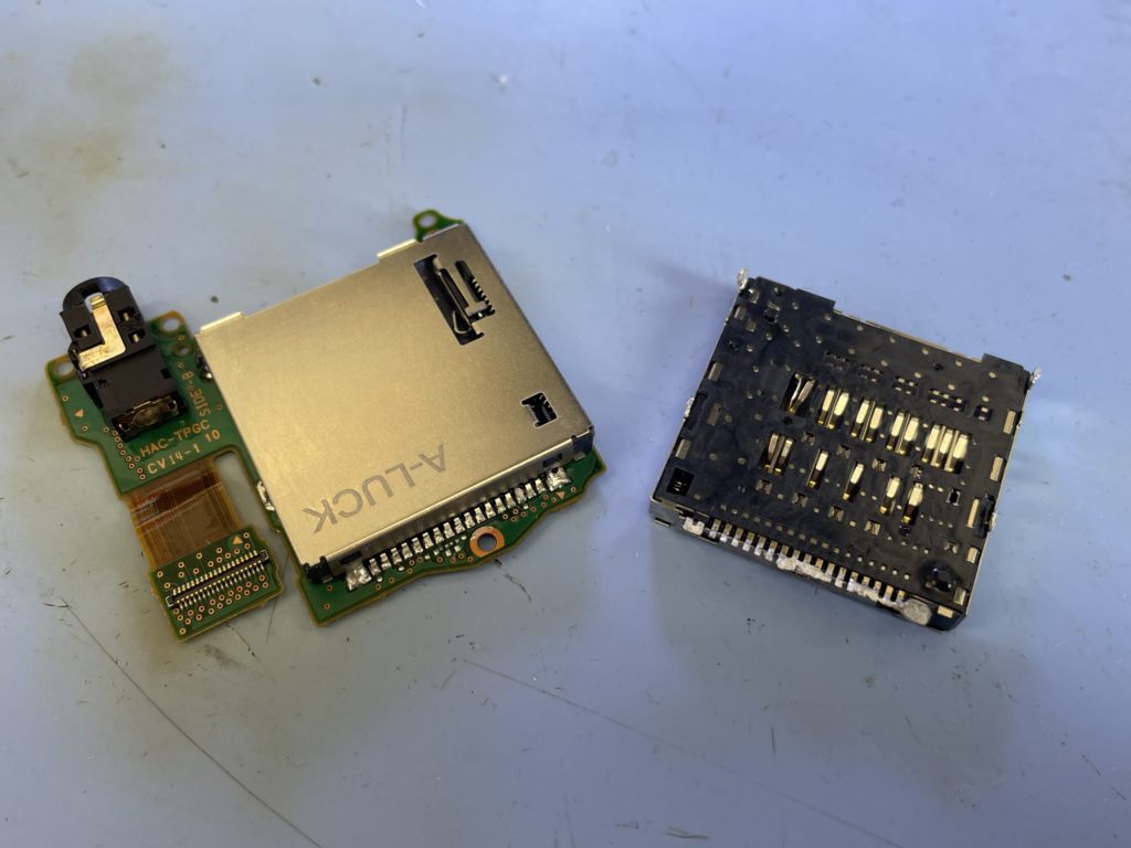 この状態ですとカセットの読み込みが出来ないのはもちろん、その後にカセットを入れてしまうとソフト側の端子も傷付いてしまい破損する恐れもあります。