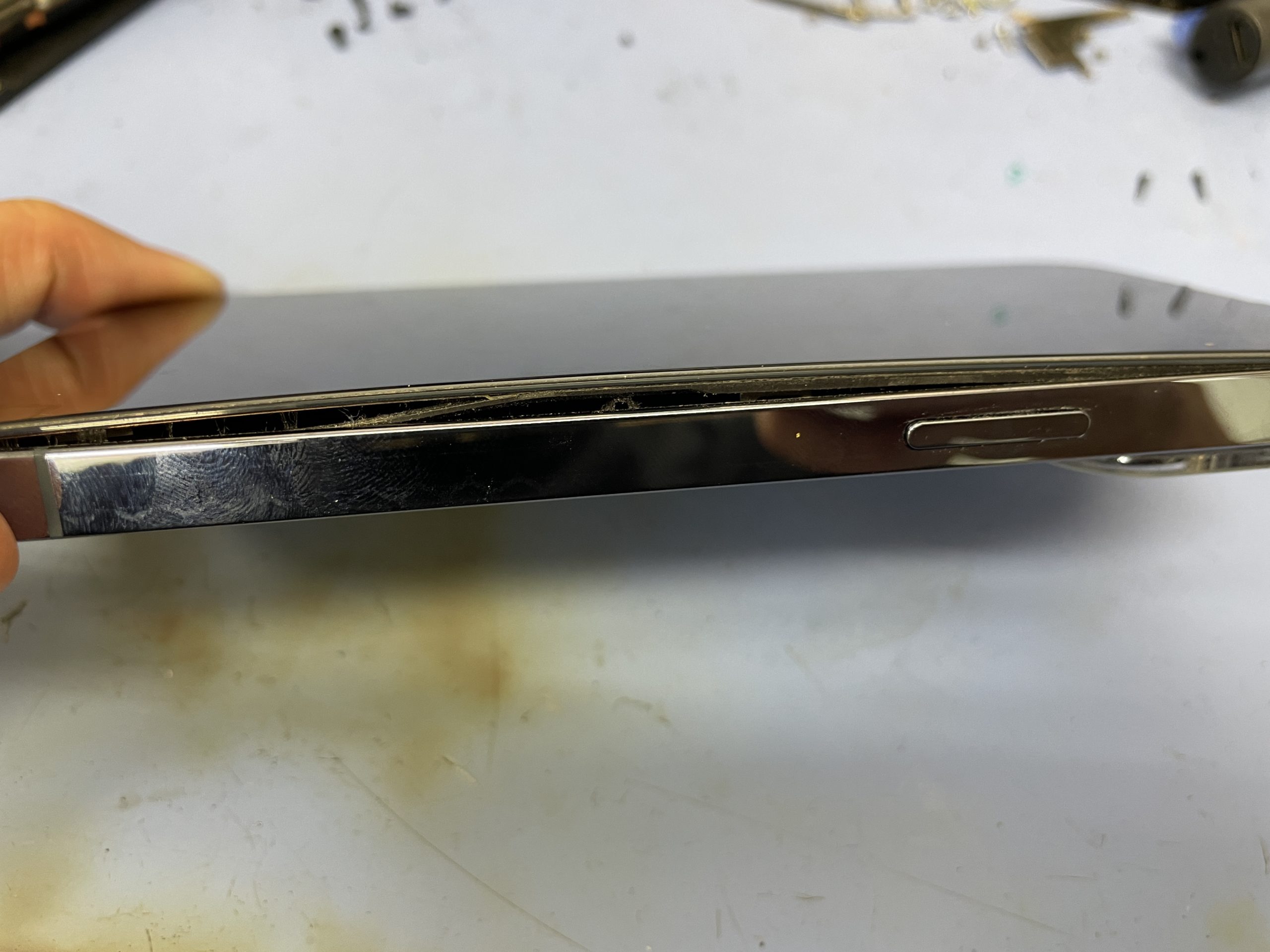 数か月前に他店でバッテリー交換をされたそうですがバッテリーが膨張しており画面が浮いているとご来店です。