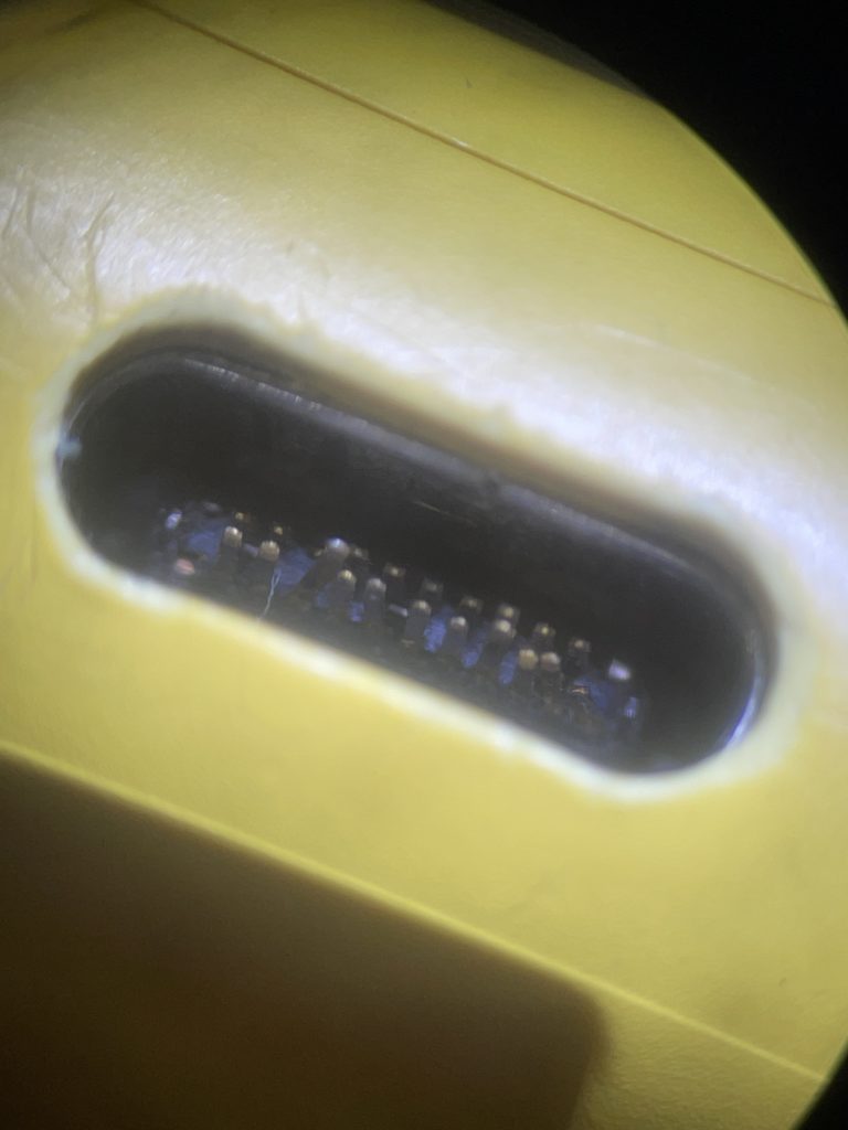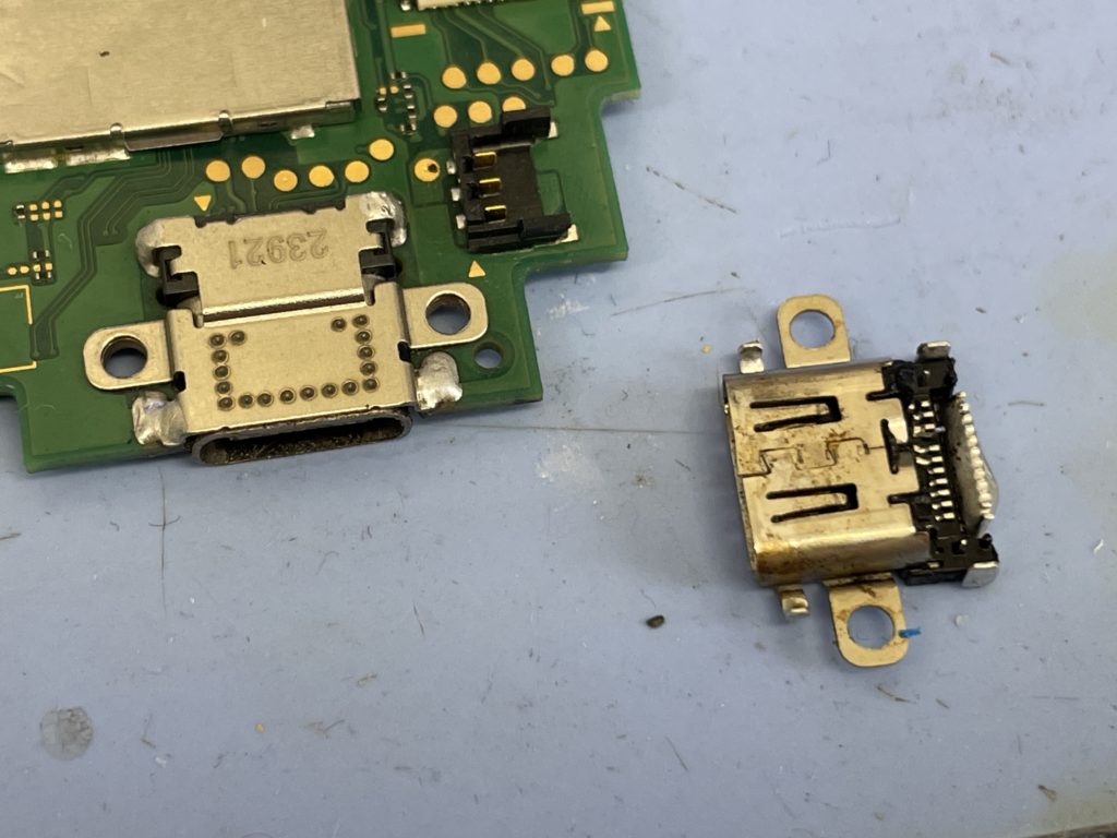 今回のように充電コネクター内の端子が損傷している状態で充電ケーブルを挿し込んでしまうと剥がれた端子同士が接触しメイン基板がショートしてしまう可能性が非常に高いのでご注意下さい。