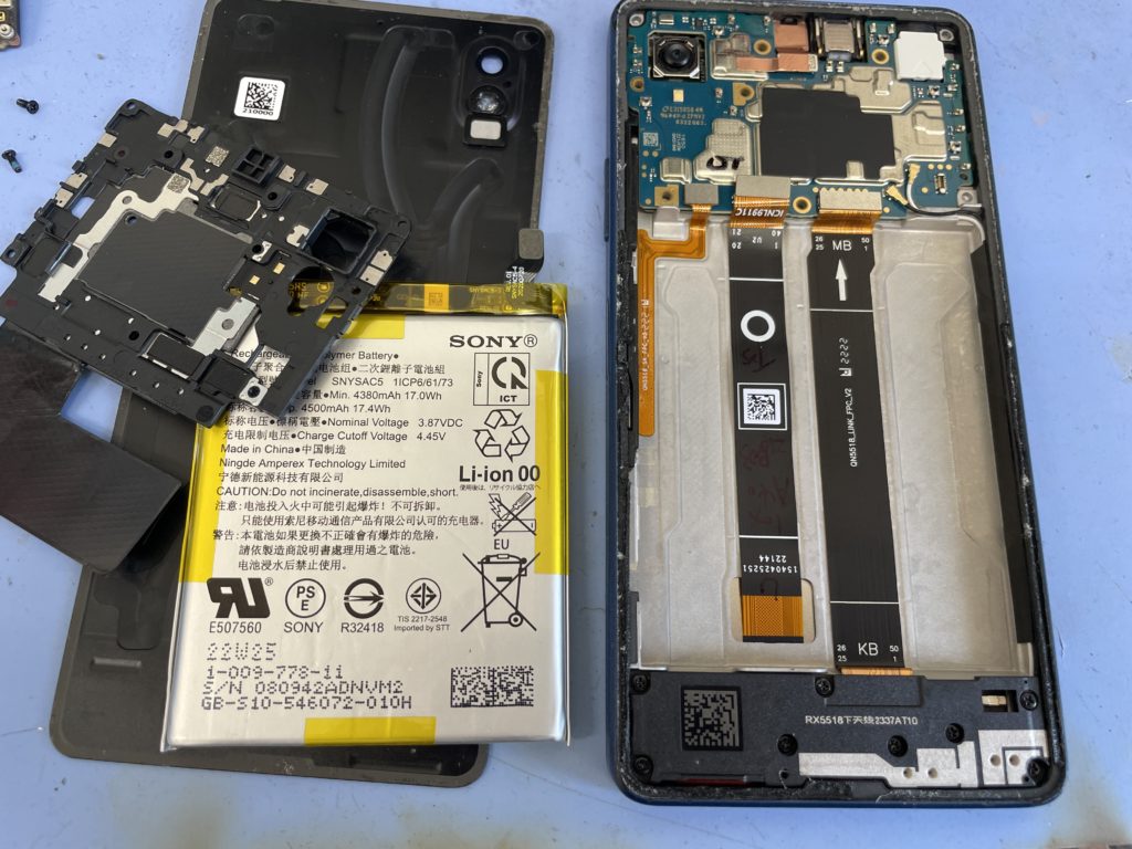 こちらの機種は背面から分解しバッテリーの下に液晶パネルのケーブルが通っているのでバッテリーも取り外しが必要です。
