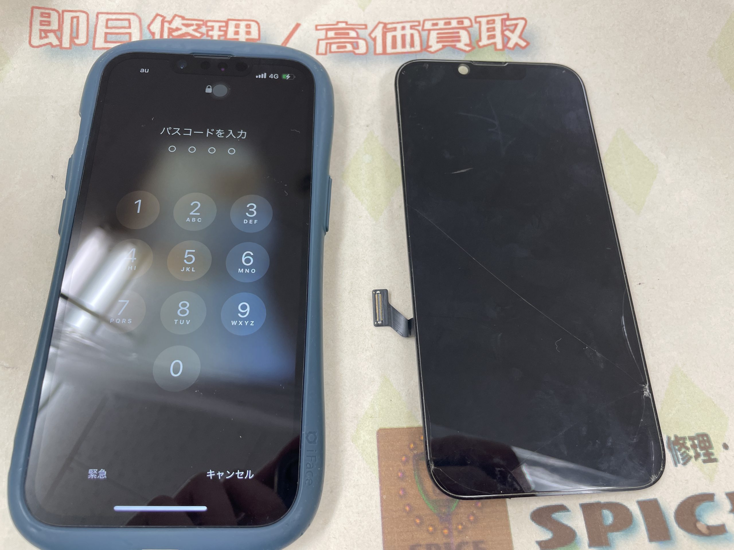 メーカー保証にも加入されておらず画面故障でしたので当店にて新しい画面パーツに交換し1時間程でデータそのまま修理完了です。
