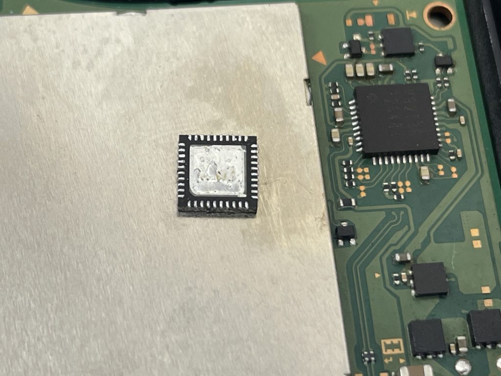 メイン基板に半田で実装されており24本のピンがありますがこの内の12本は半田ごてでは取り付け出来ない構造の為、高温の熱風で半田を溶かしながら取り外し及び取り付けする必要がございます。