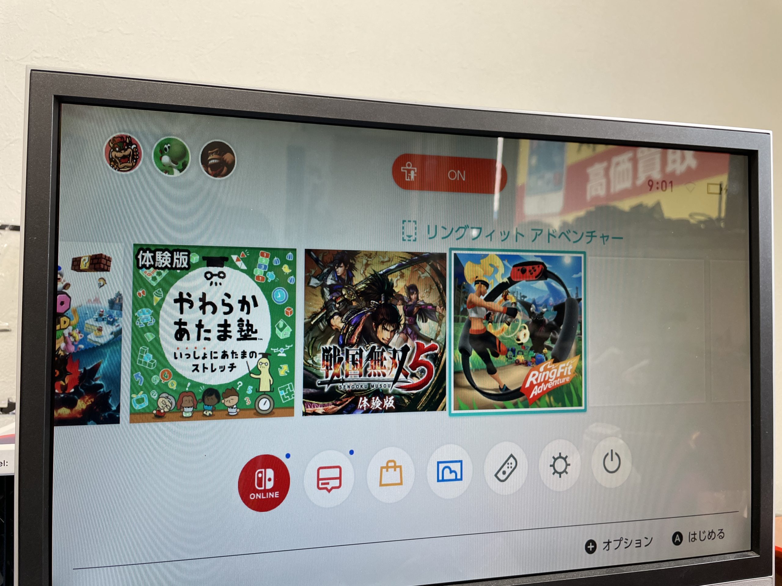 無事に充電中の表示が出てしばらくすると起動、ドックに接続しテレビへの出力も正常です。